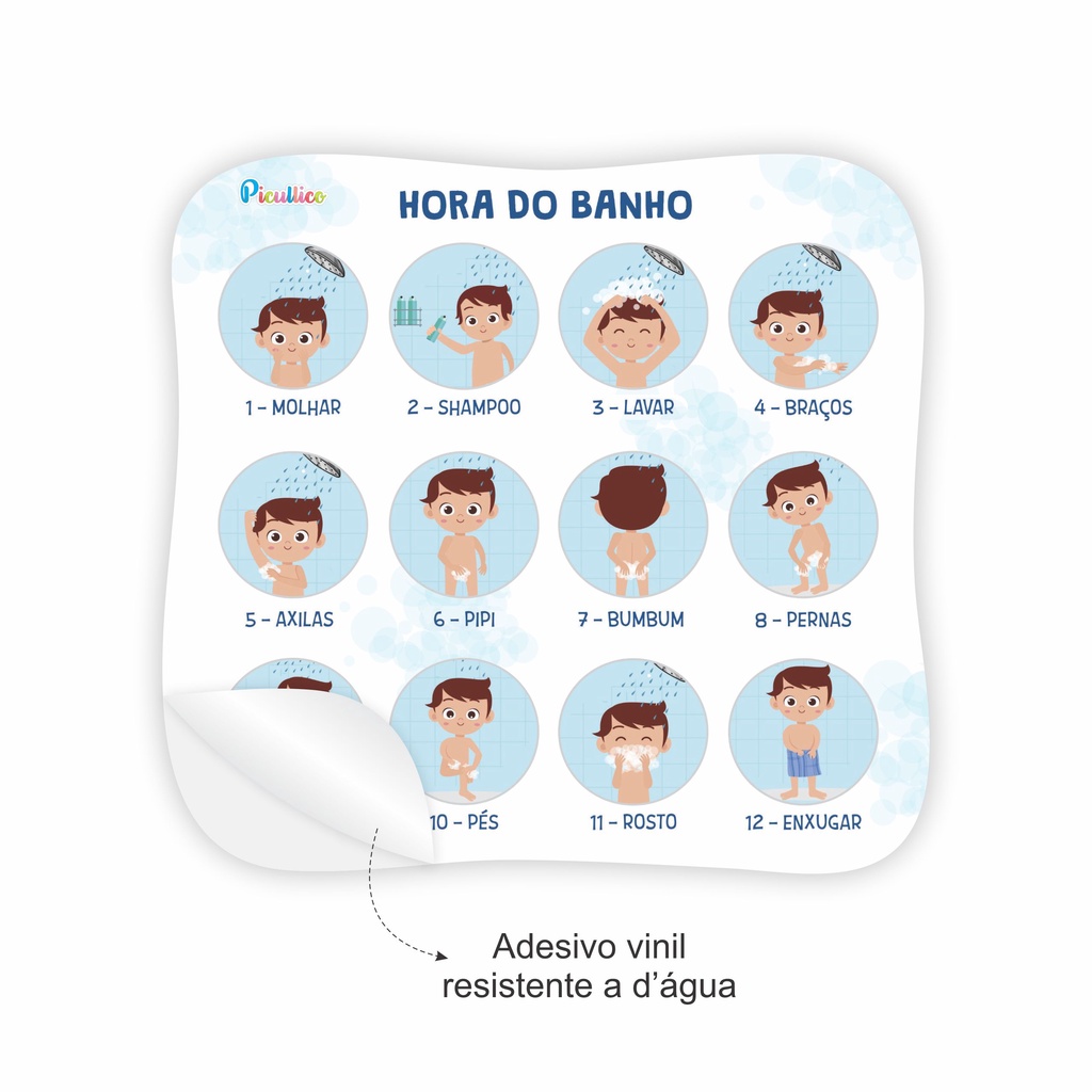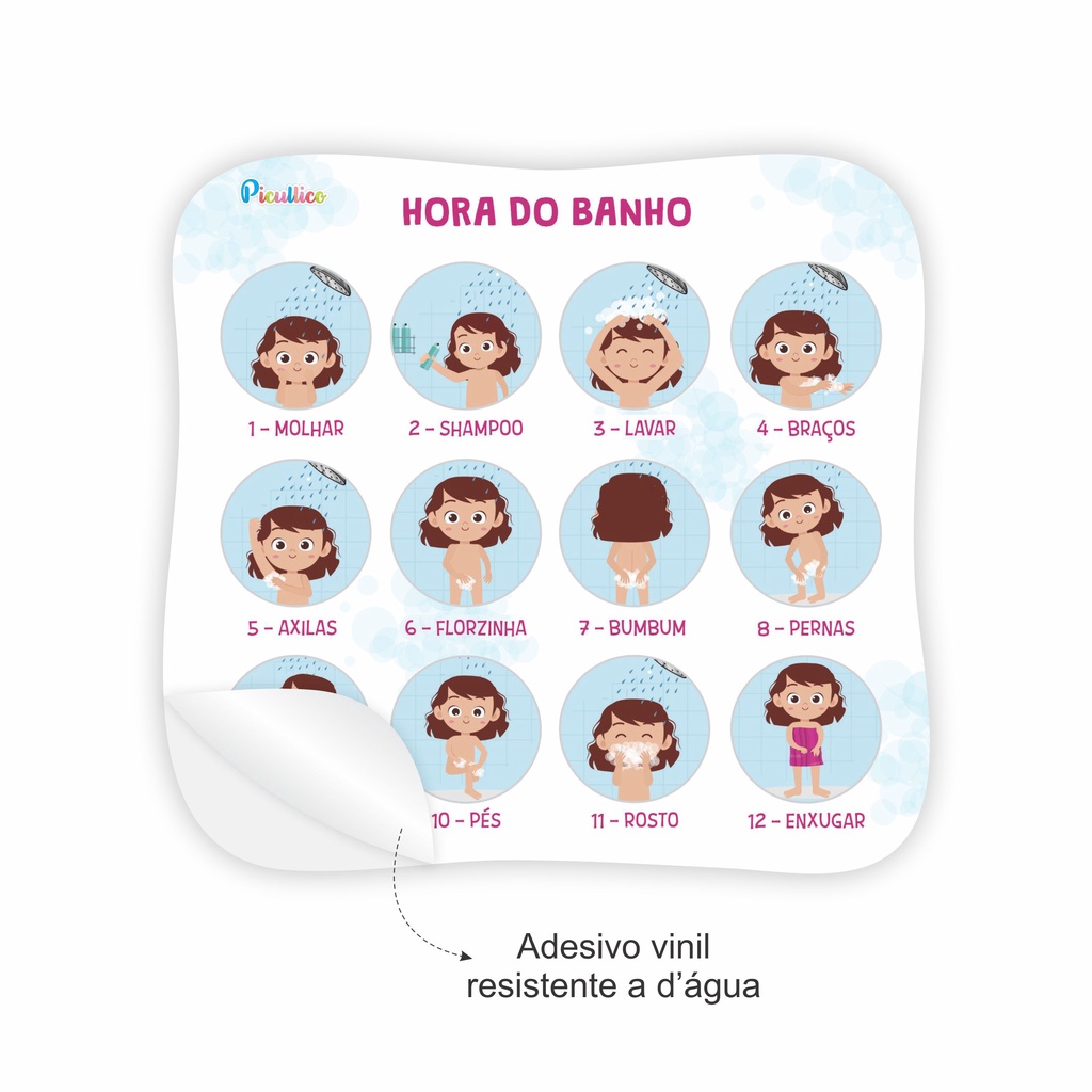 Hora do Banho Passo a Passo Adesivo Educativo Infantil