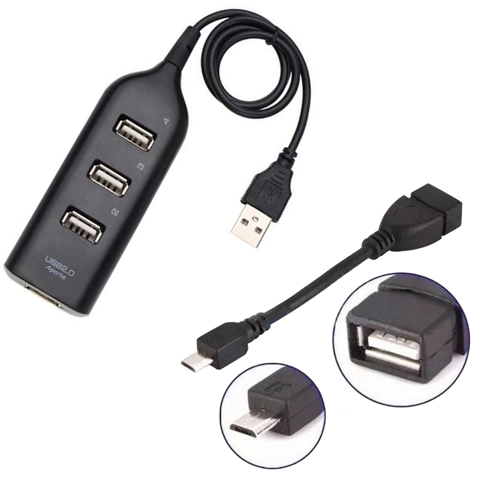 Hub 4 Portas Usb Com Fio De 1 Metro Mobilador + Otg Micro Usb V8 Mobilador Celular Teclado Mouse Pen Drive