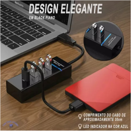 Hub USB 3.0 de 4 Portas Expansor de Alta Velocidade para Conexões Rápidas a 5 Gbps