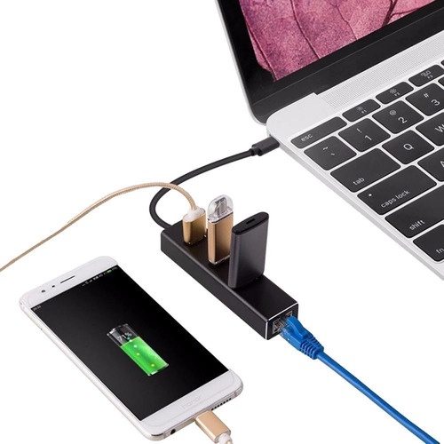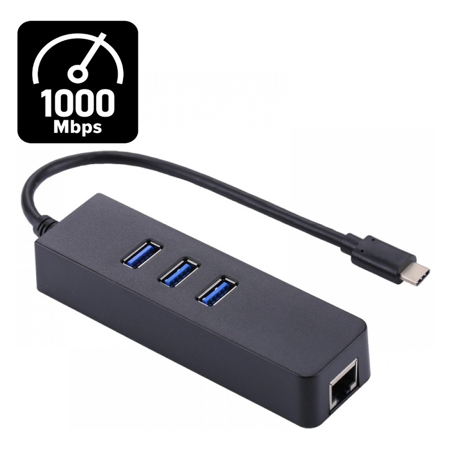 Hub USB-C Tipo C Para LAN Gigabit 1000Mbps RJ45 + 3 Portas USB 3.0 PC e Mac - F3