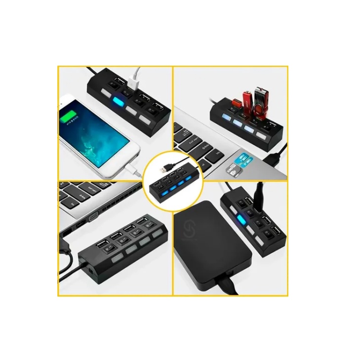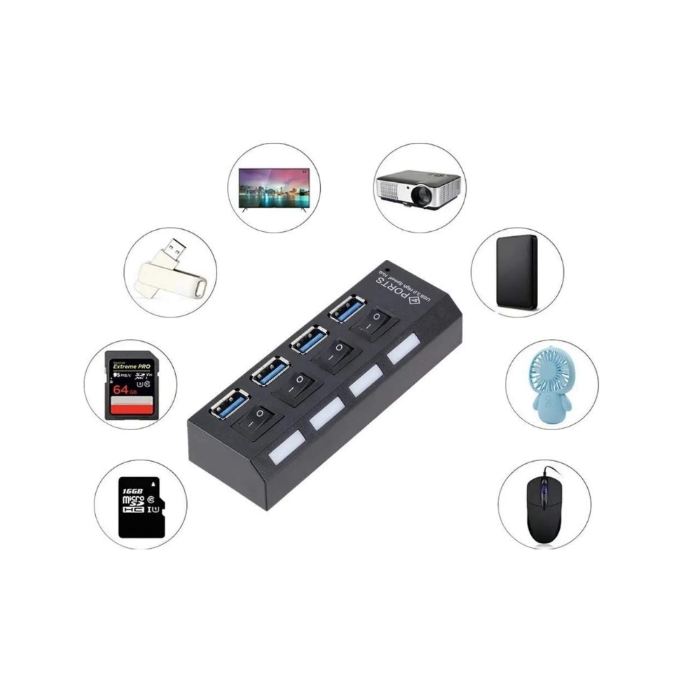 Hub USB com 4 Entradas USB 2.0 de Alta Velocidade com Botão Liga/Desliga