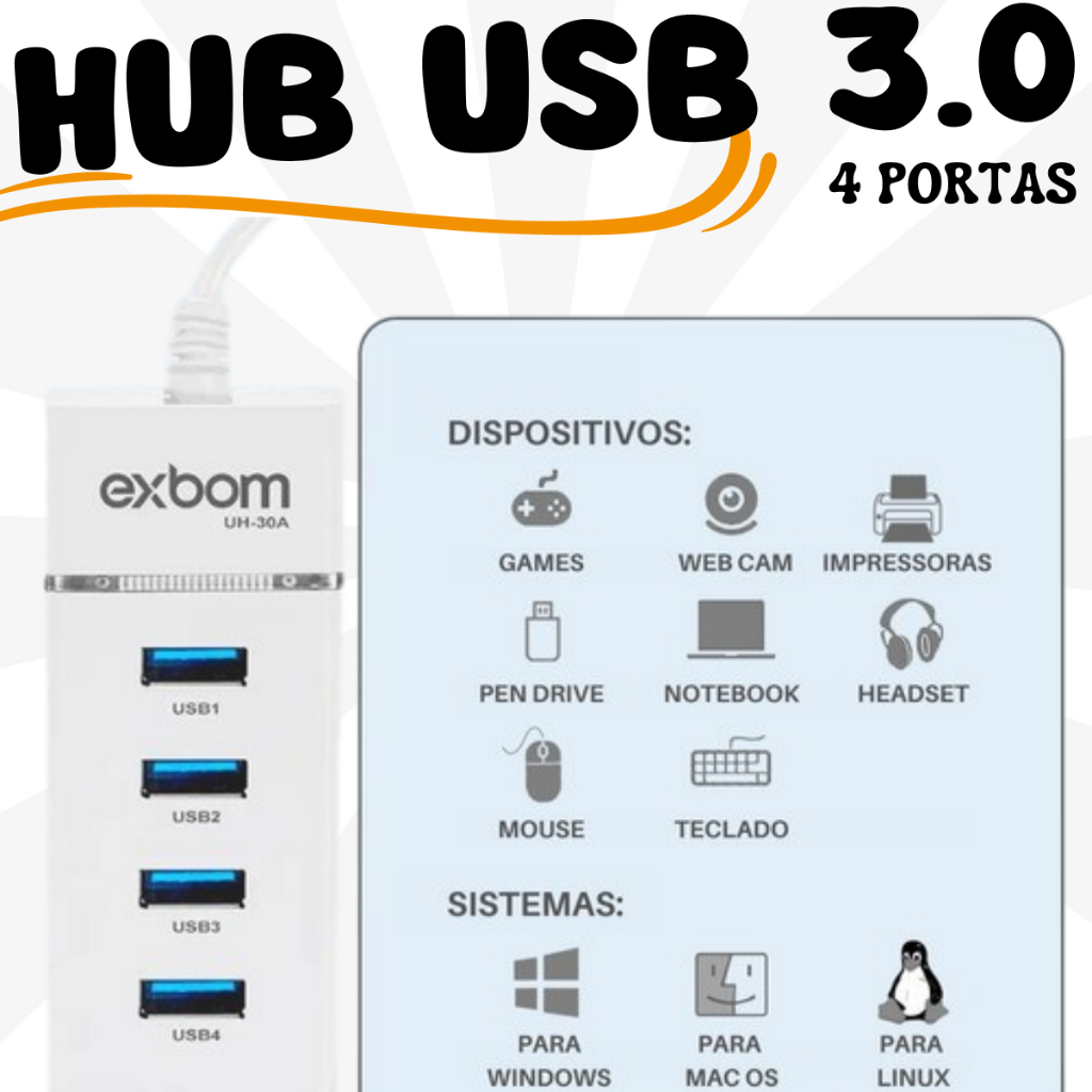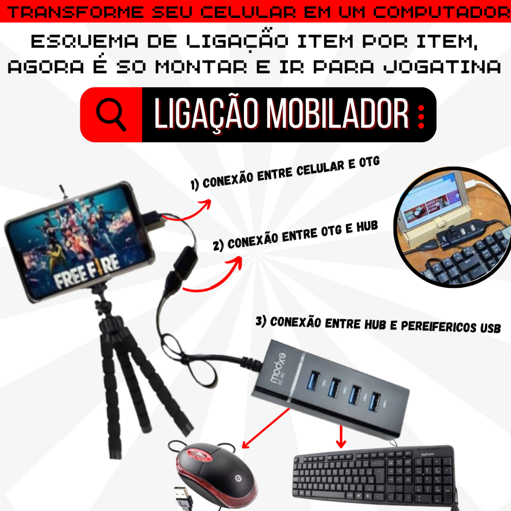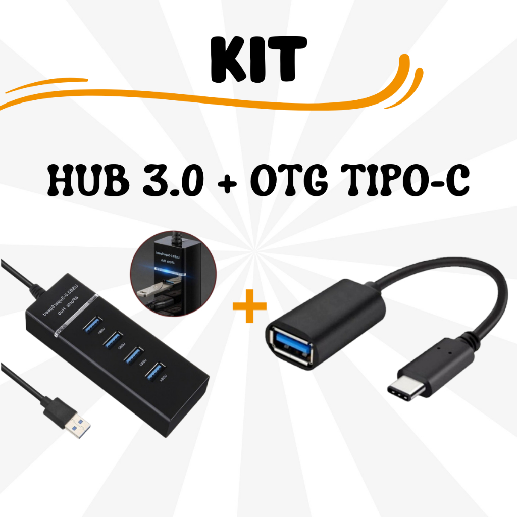 Hub Usb 3.0 4 Portas Mobilador Gamer Alta Velocidade + Otg Conversor para Celular Micro Usb Tipo-c