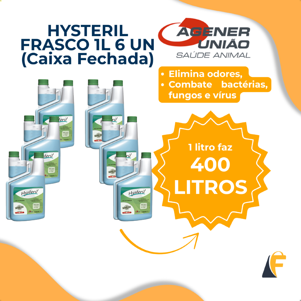 Hysteril 1L Desinfetante E Eliminador De Odores Agener 6 Unidades Caixa Fechada