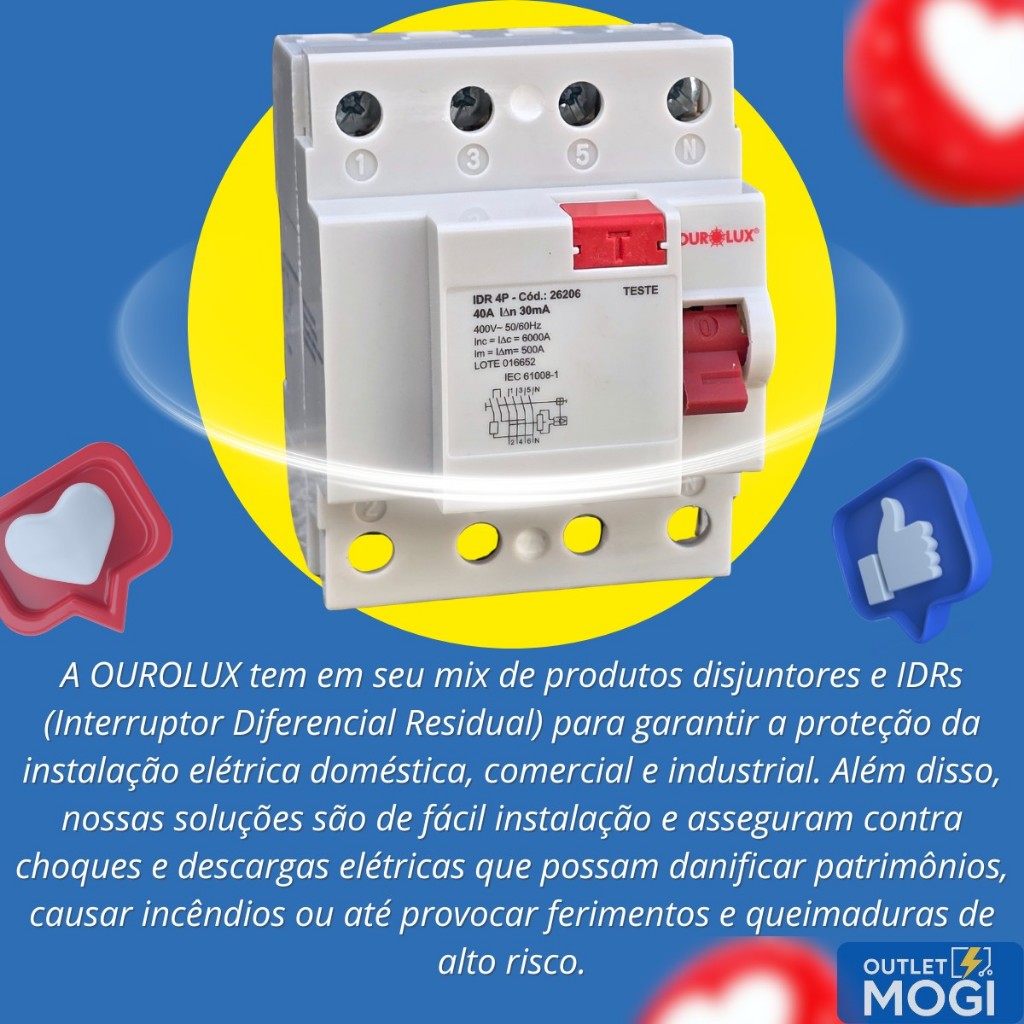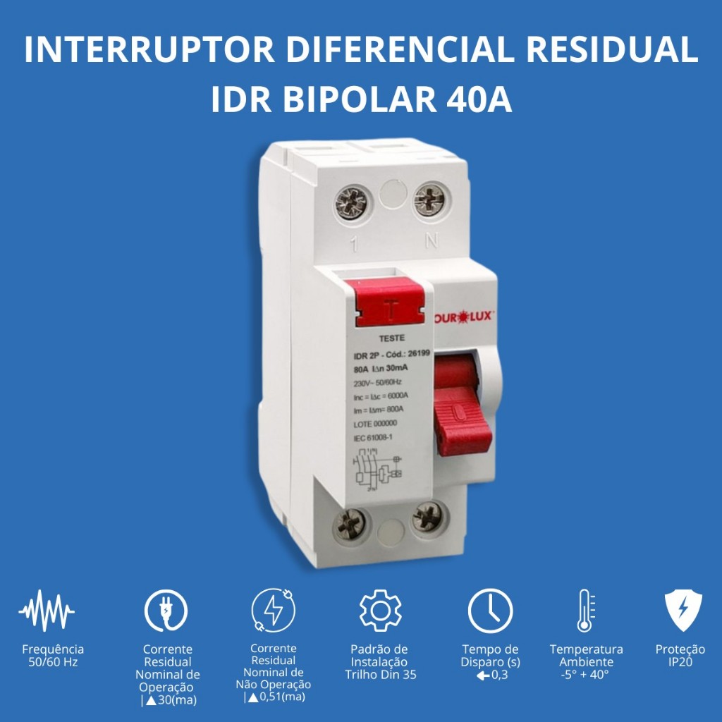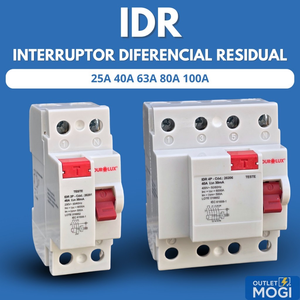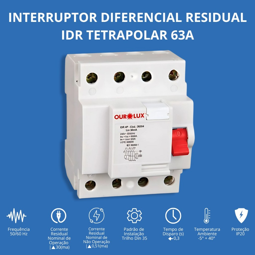 IDR Interruptor Diferencial Residual Bipolar Tetrapolar Ourolux 25A 40A 63A 80A 100A Amperes