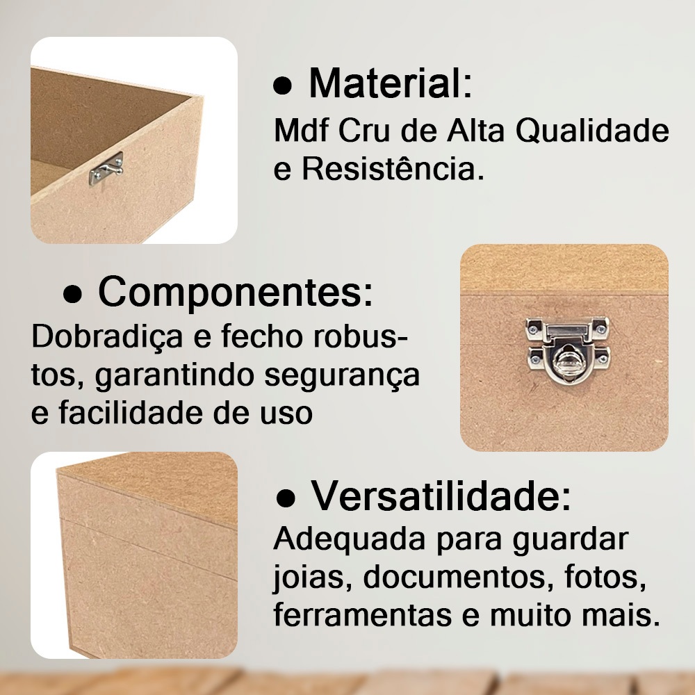 IMPERDÍVEL! Caixa Organizadora Lisa 30x20x10 Com Dobradiça e Fecho P/ Cadeado em Mdf