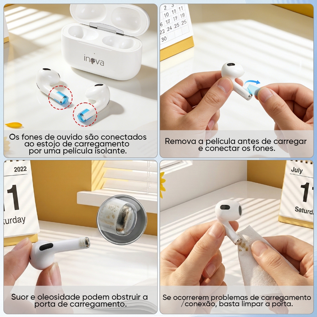 INOVA Fones de Ouvido Bluetooth 5.3 TWS Sem Fio Fone Esportivo Com Microfone Atende Chamada Ligação 9D Som HD