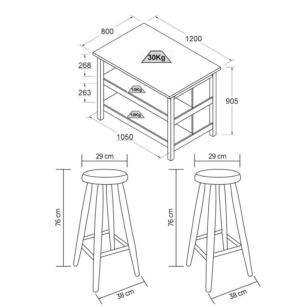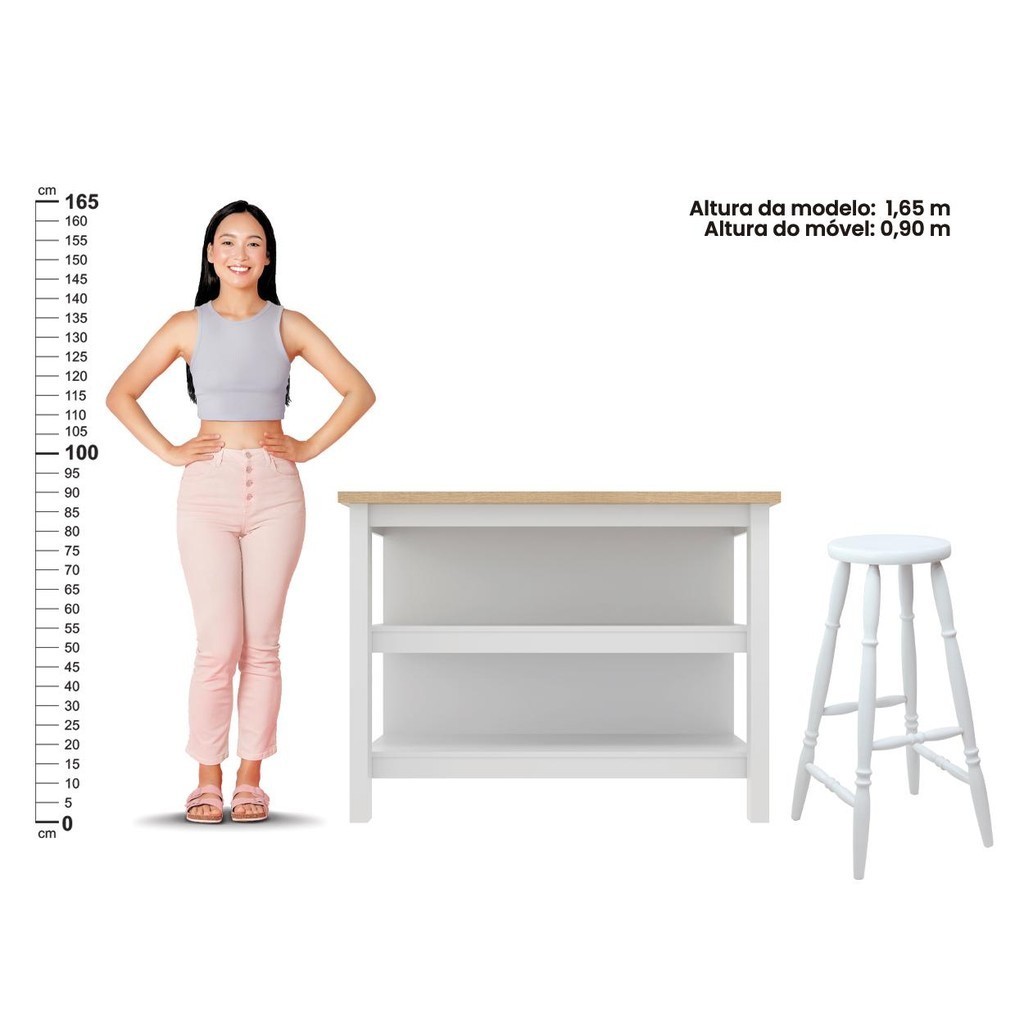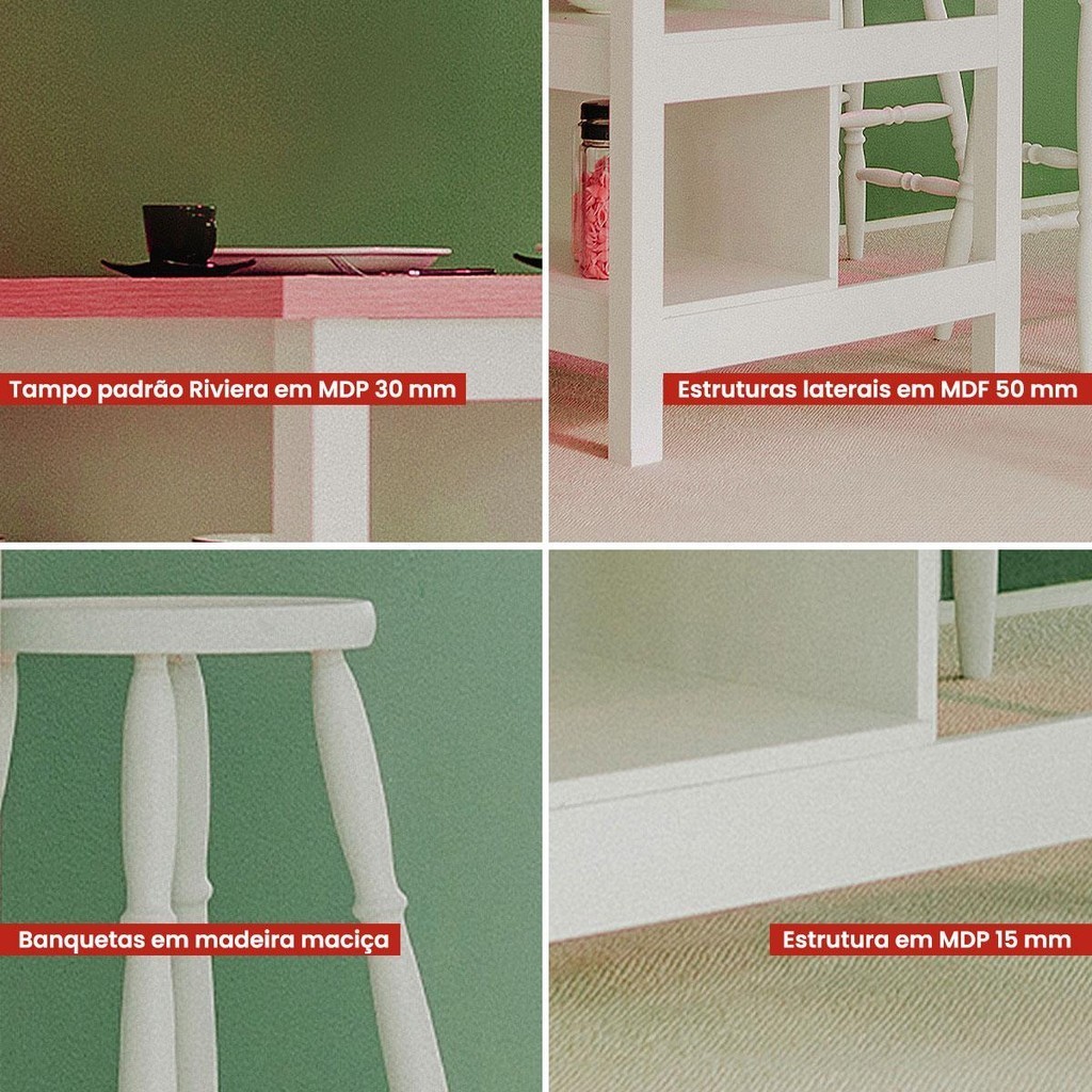 Ilha Cozinha + 2 Banquetas Ditália 2 Pratel. Branco CD-1019