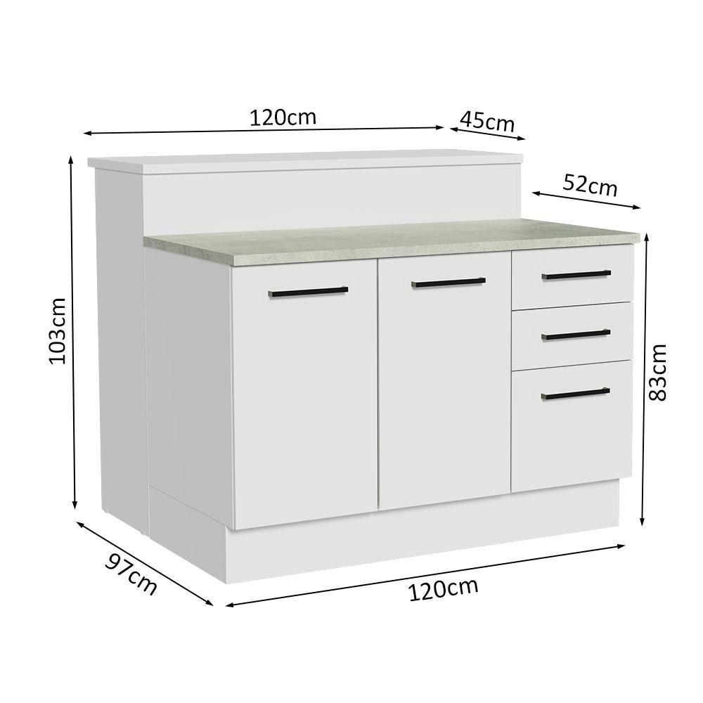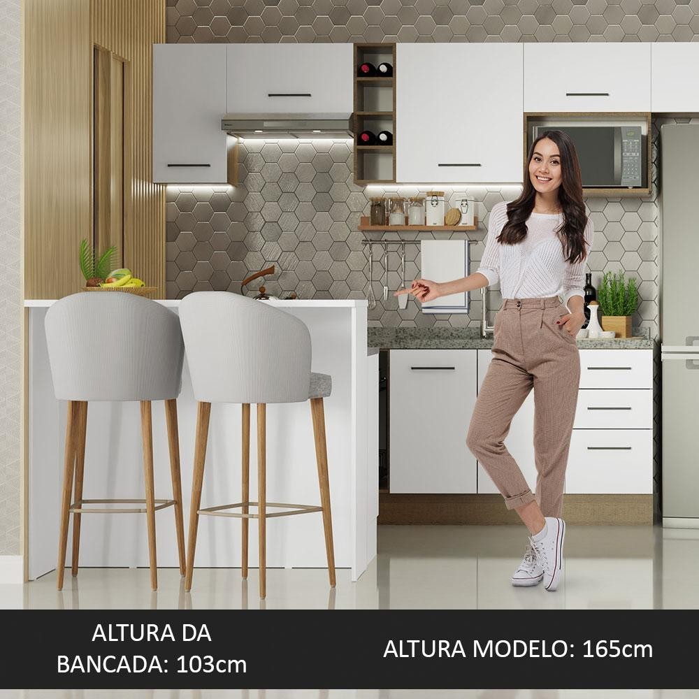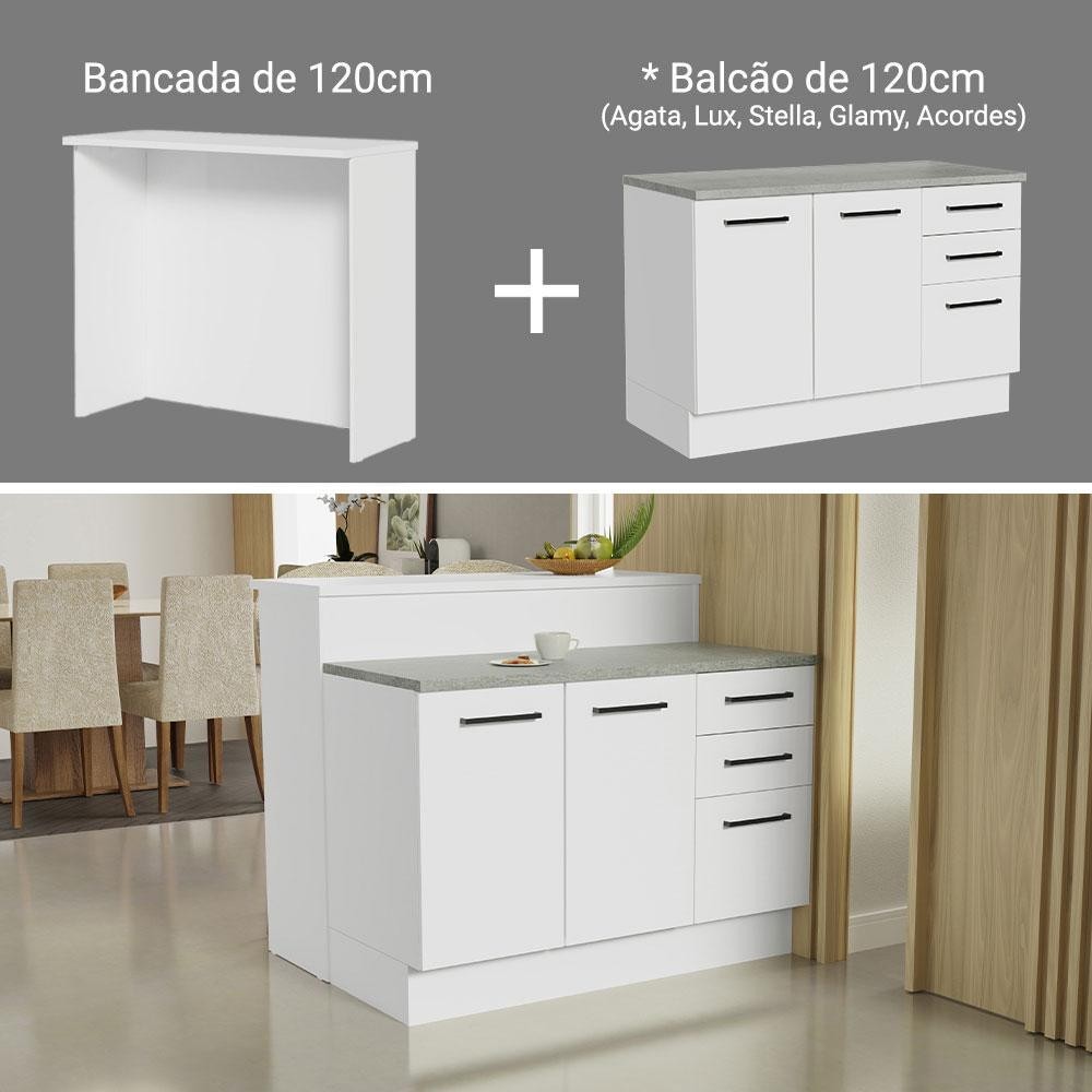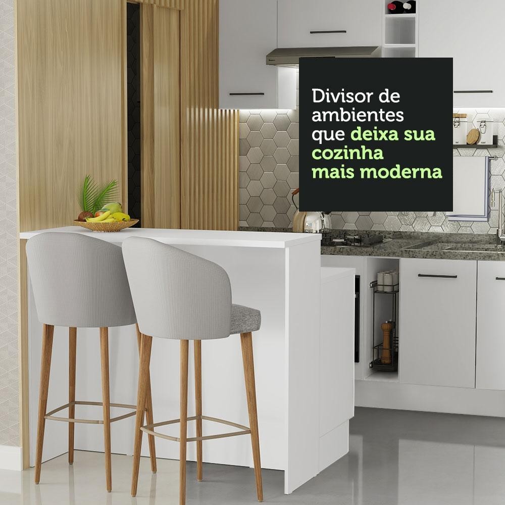 Ilha de Cozinha com Bancada e Balcão 120 cm Branco Agata Madesa