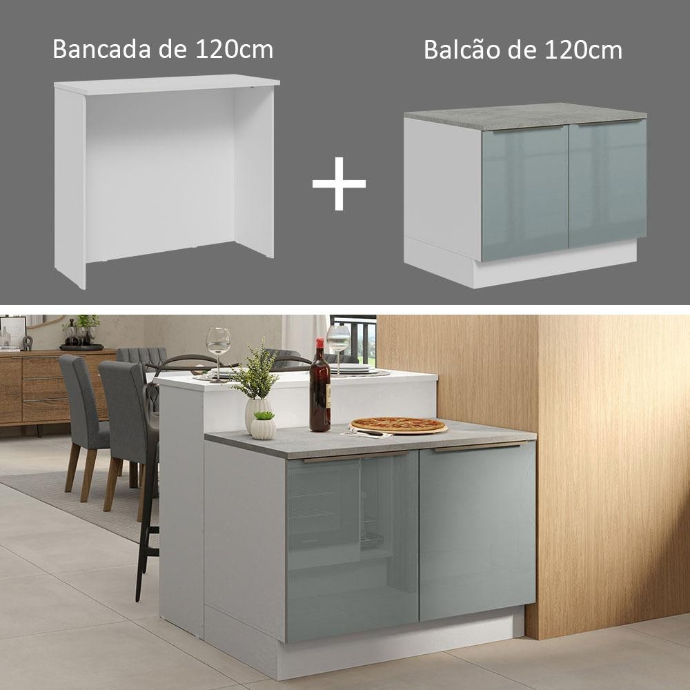 Ilha de Cozinha com Bancada e Balcão 120 cm Branco/Cinza Lux Madesa