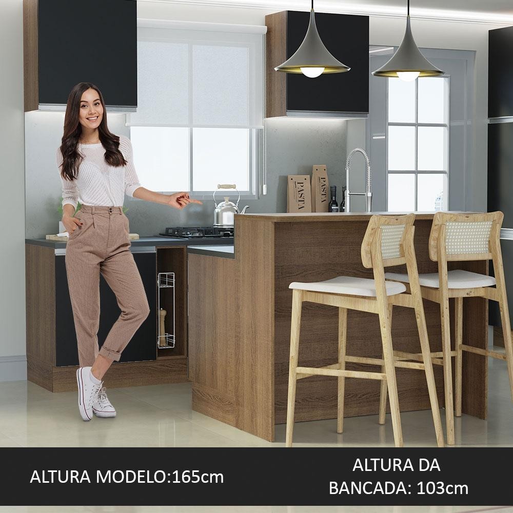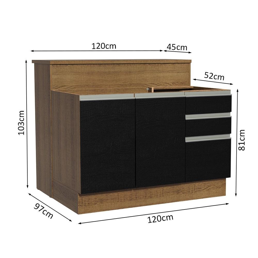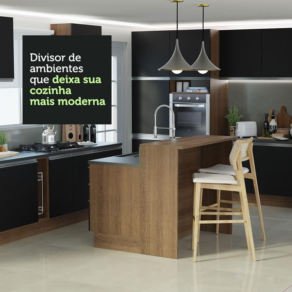 Ilha de Cozinha com Bancada e Balcão 120 cm Rustic/Preto Glamy Madesa