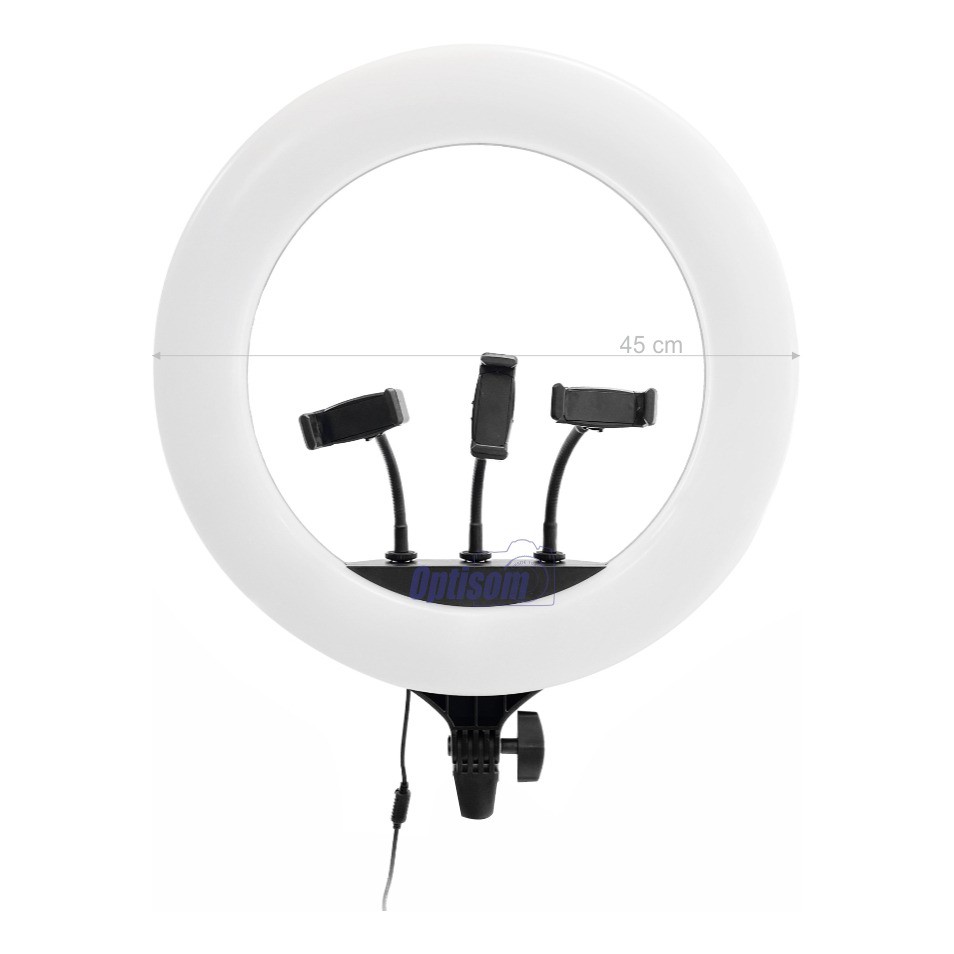 Iluminador Ring Light 18 Polegadas 46 cm profissional + tripé 2,1m e 3 suportes de celular