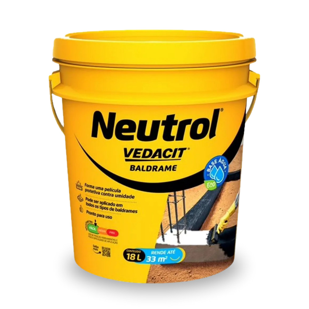 Impermeabilizante Baldrame Pintura Asfáltica Neutrol Vedacit 18L Concreto Secagem Rápida Argamassa