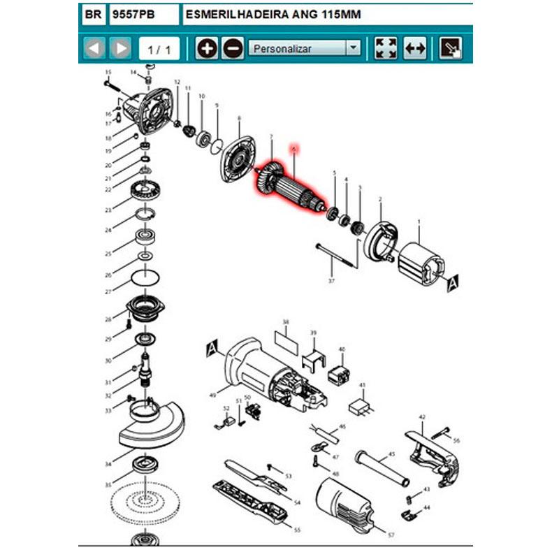 Induzido para Esmerilhadeira 9557PB / GA2014 em 220V 515613-9 MAKITA