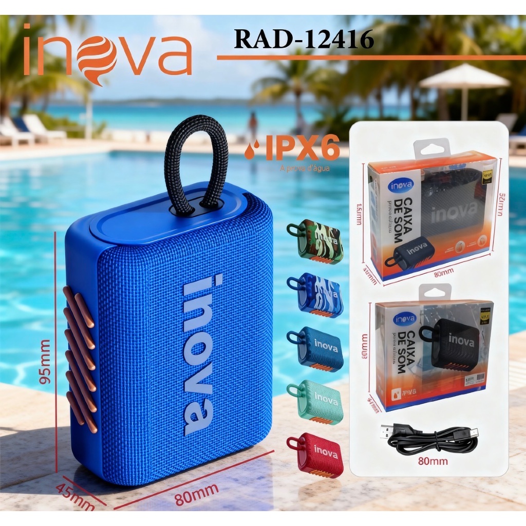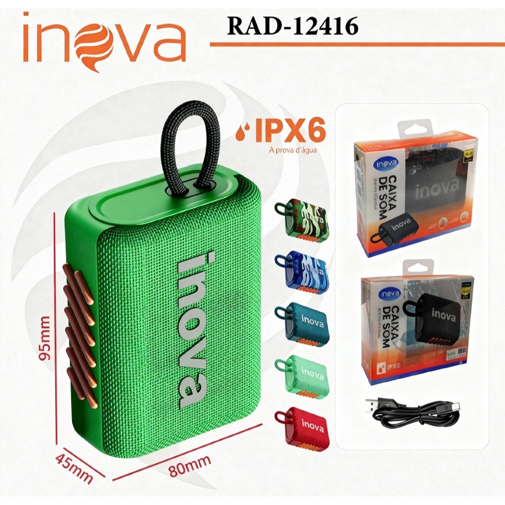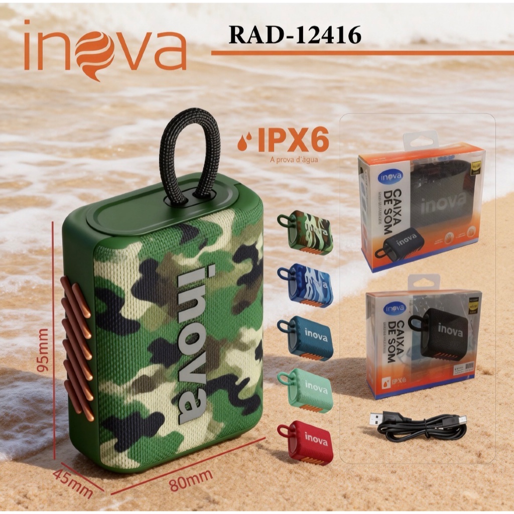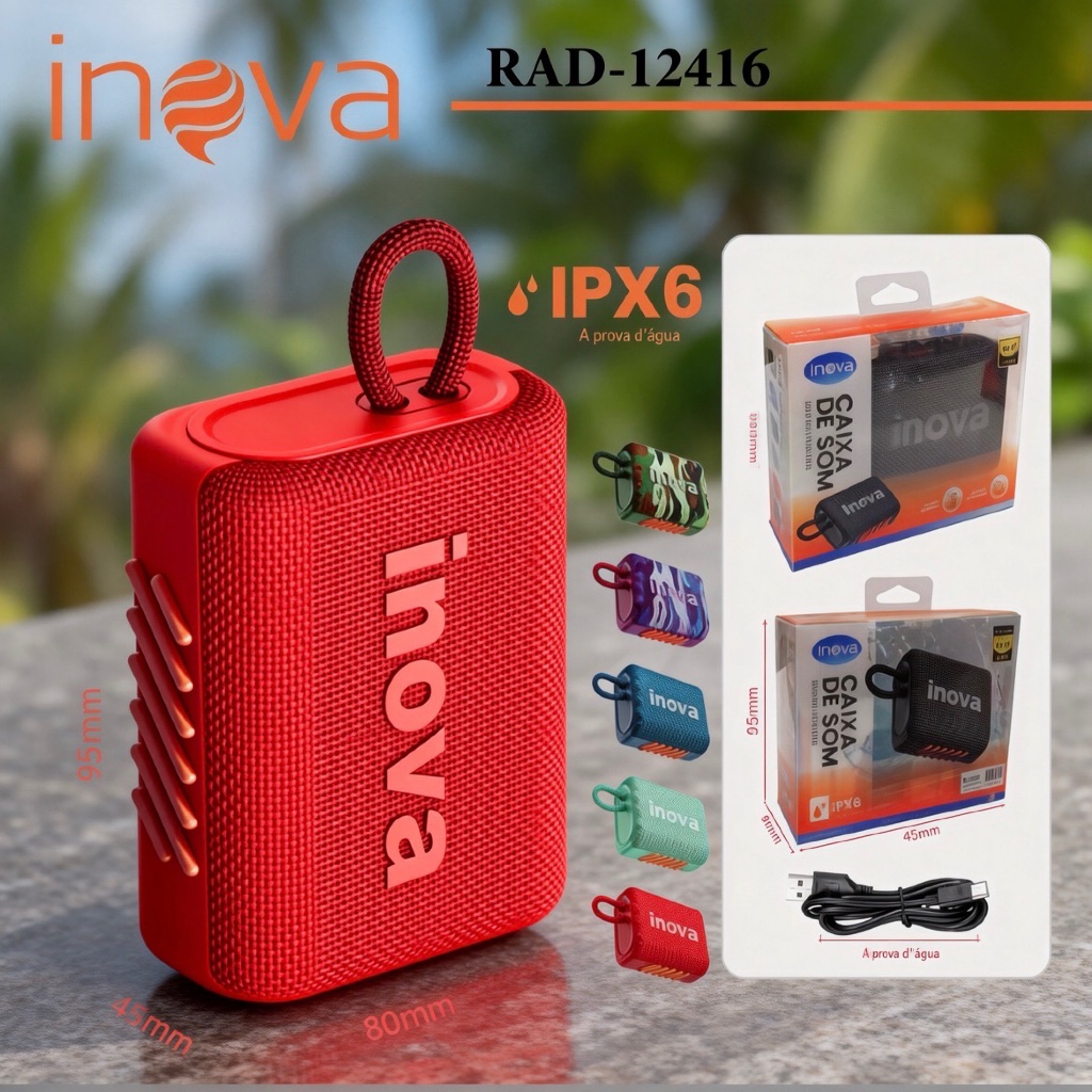 Inova Caixa De Som Bluetooth Portátil Ipx6 Com Led Som Potente 16W Bateria 2400mAh