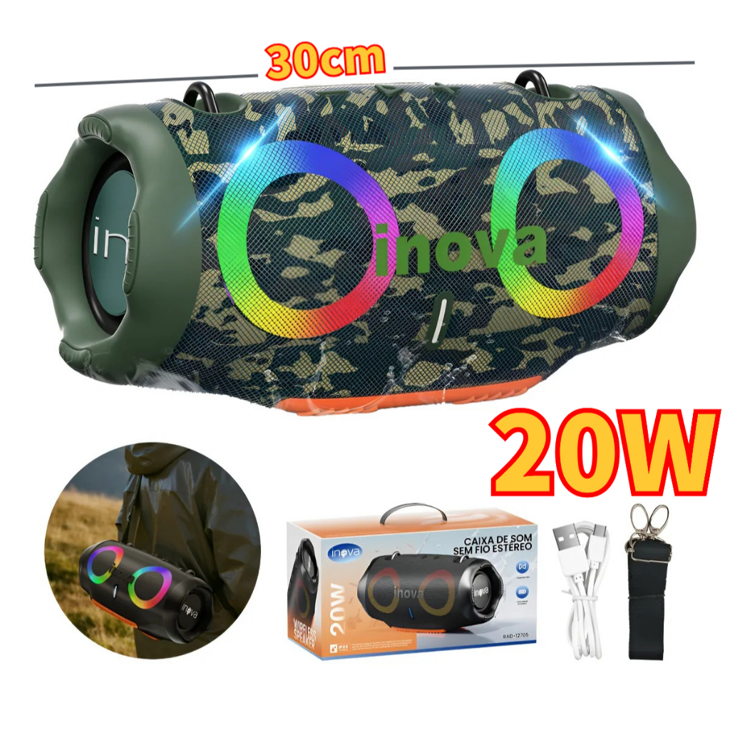 Inova caixa de som bluetooth tws Luz RGB Xtreme 4 Pen Drive FM Tipo-C Resistente A Água IPX6 Caixinha de Som Boombox