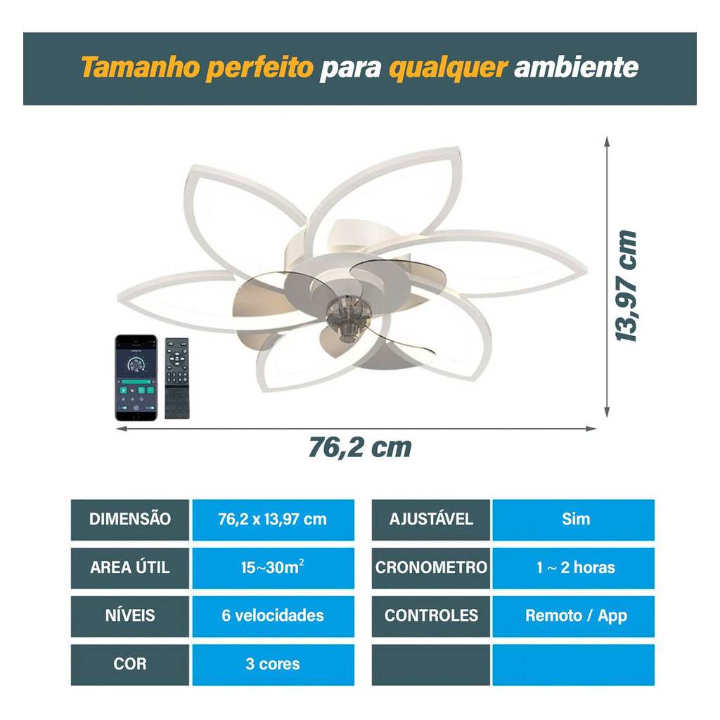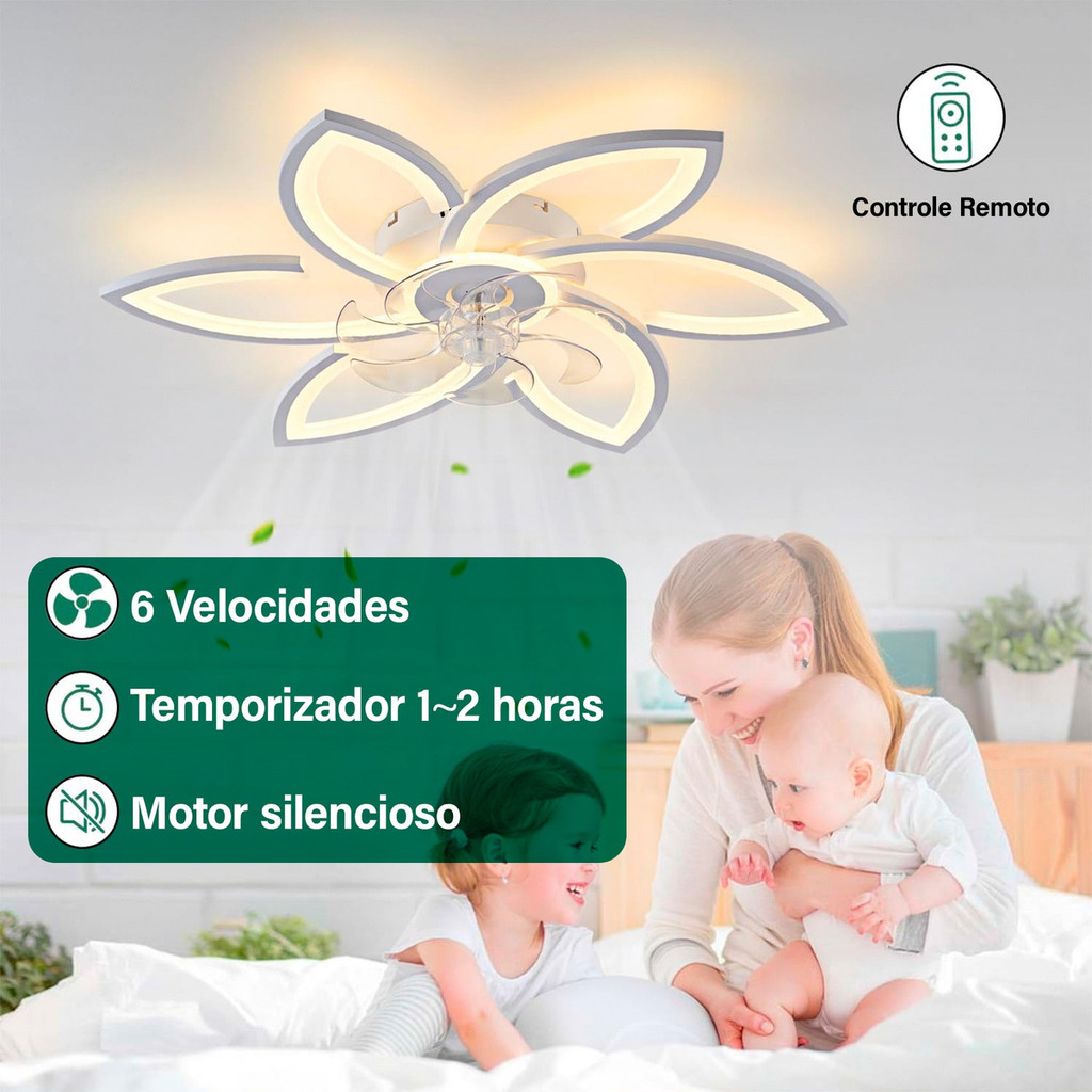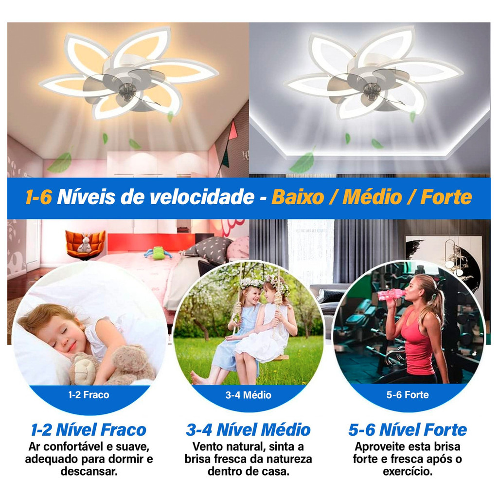 Intelar 36w Ventilador de Teto 6 Pás Retráteis Ultra Silencioso LED Multicolor Moderno com Controle - Bivolt