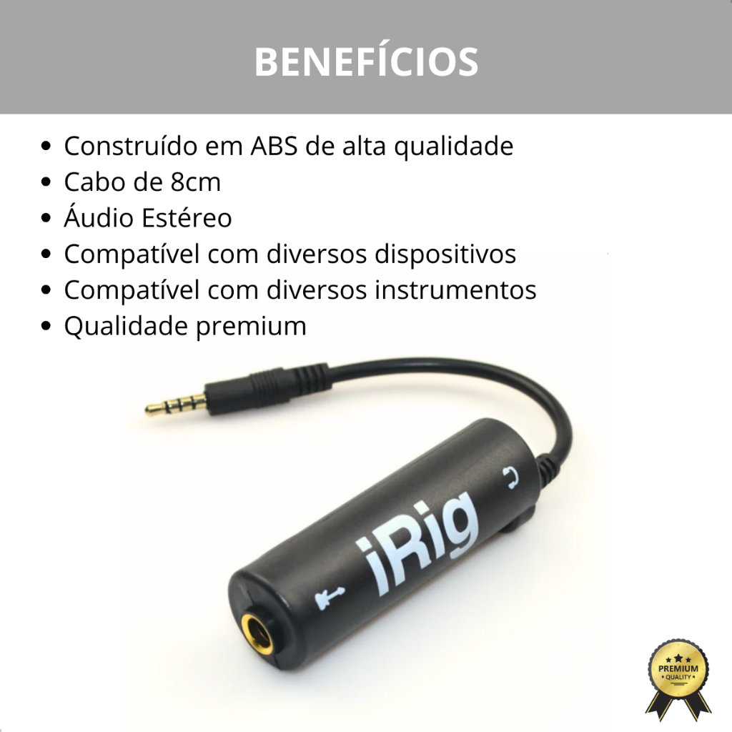 Interface De Áudio iRig P/ Instrumentos Celular Android Ios