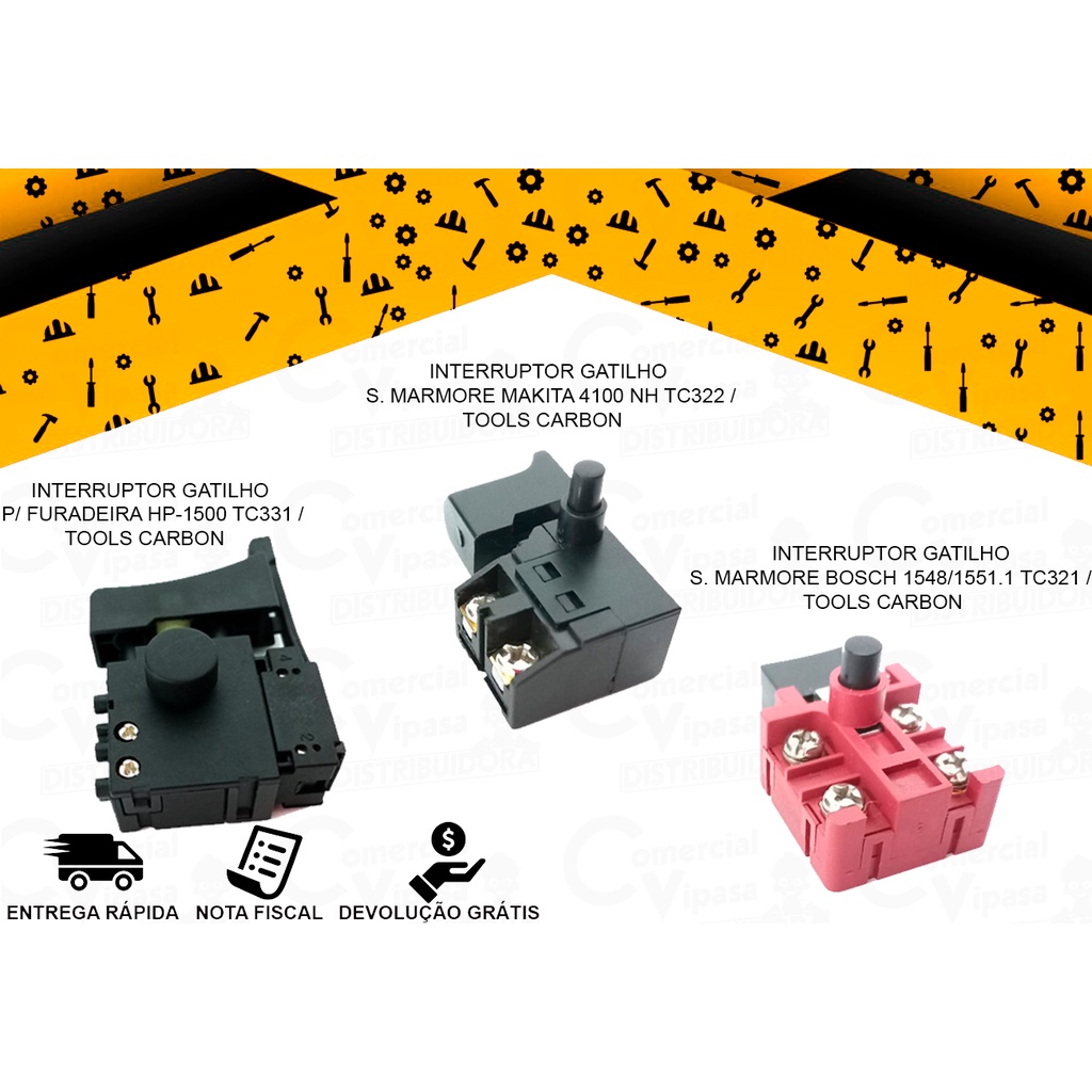 Interruptor de Gatilho p/ Serra mármore e Furadeira BOSH/MAKITA TOOLS CARBON