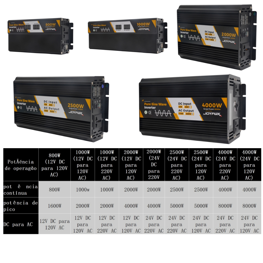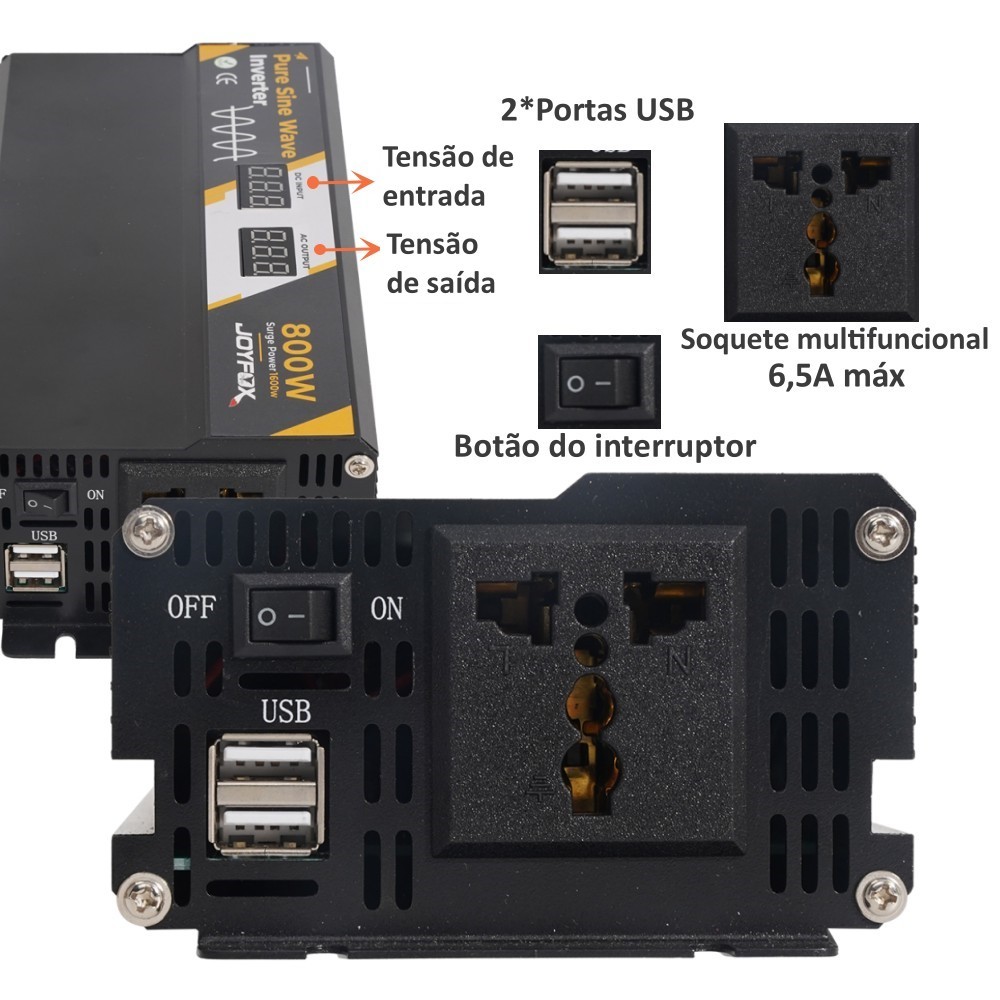 Inversor Energia Onda Senoidal Pura 800W 1000W 12v Para 120V 220V USB Conversor Transformador Tensão