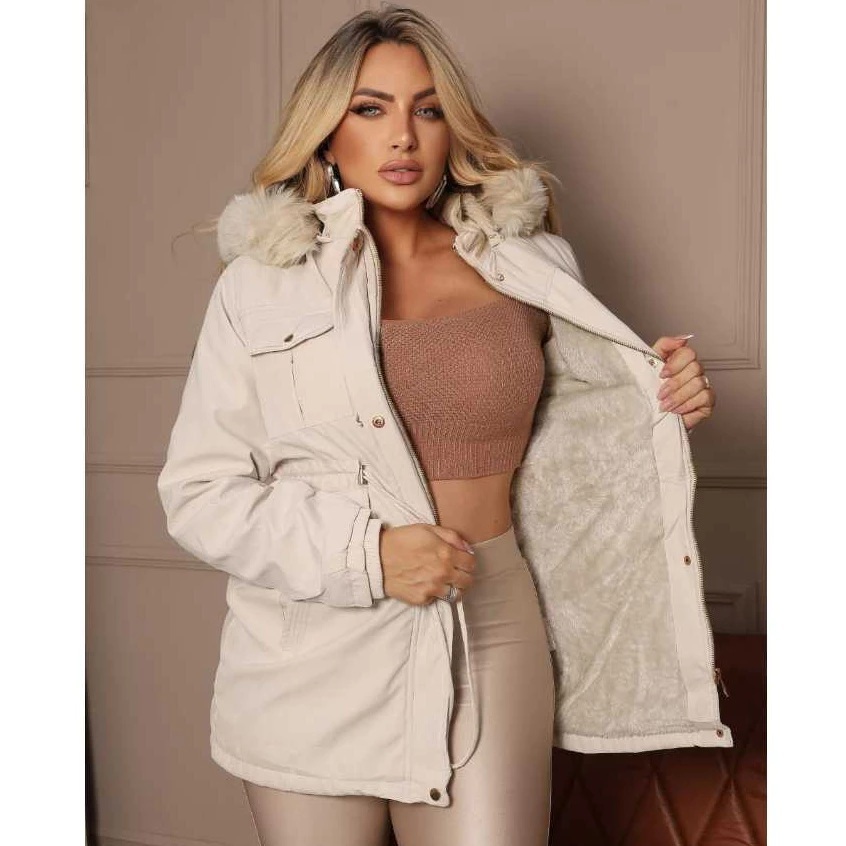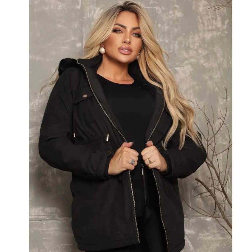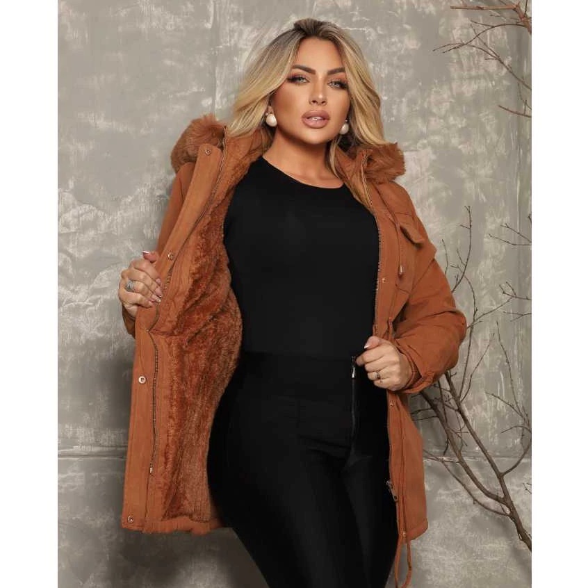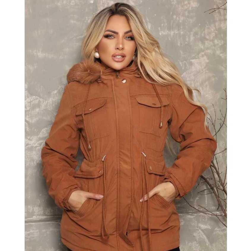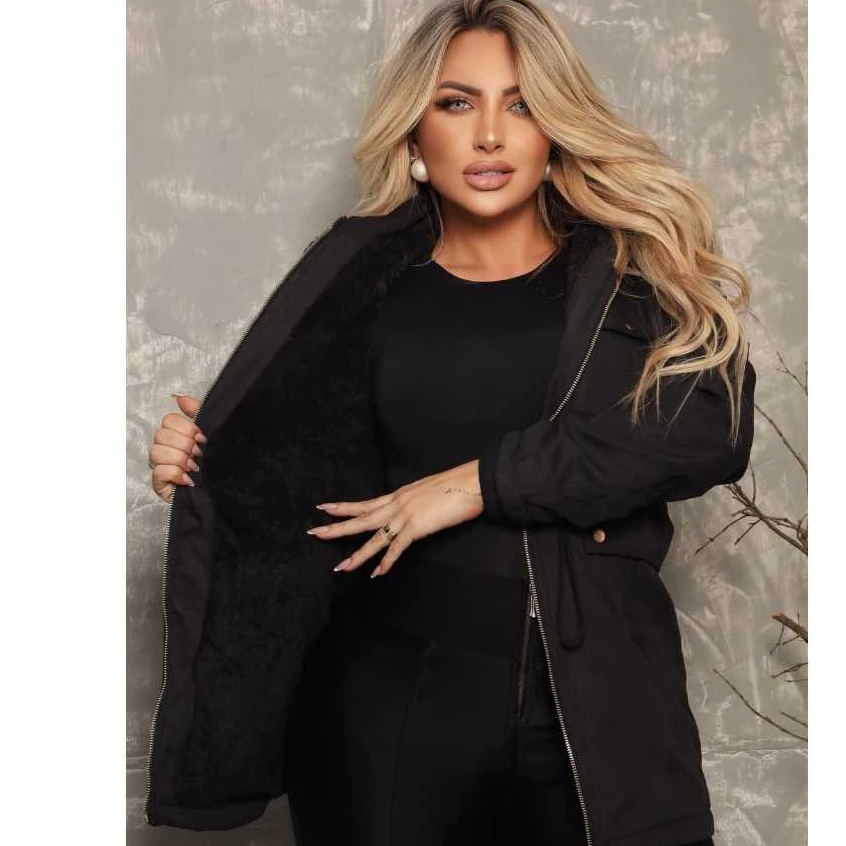 JAQUETA FEMININA PARKA TRADICIONAL INVERNO PELUCIADA FORRADA POR DENTRO CASUAL ESTILOSA