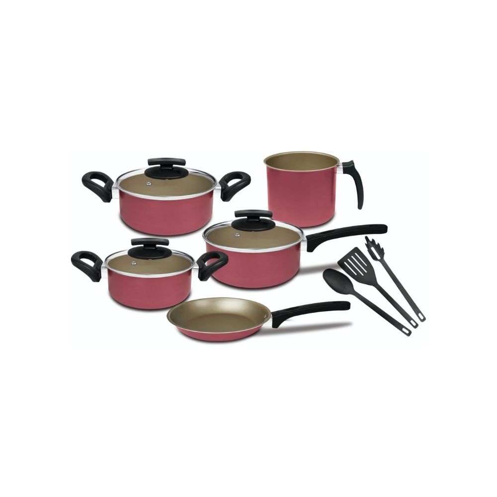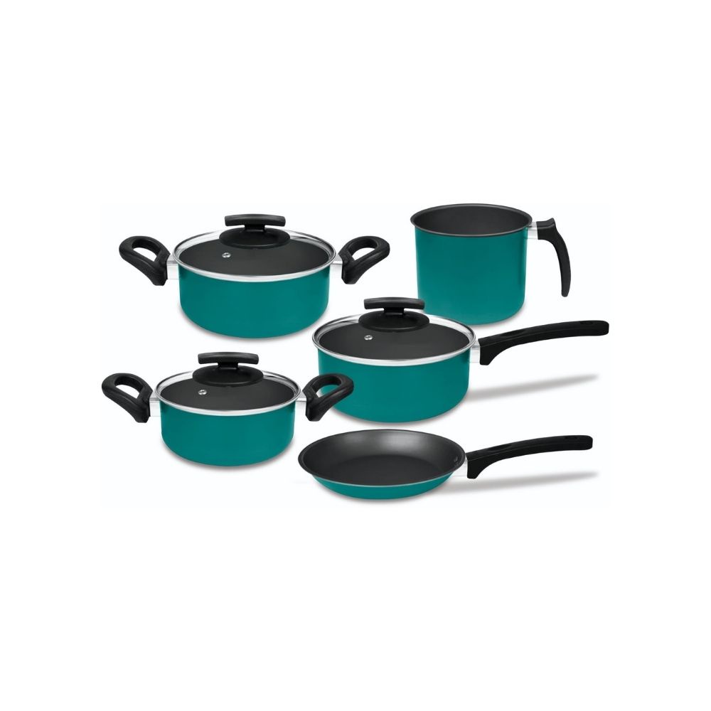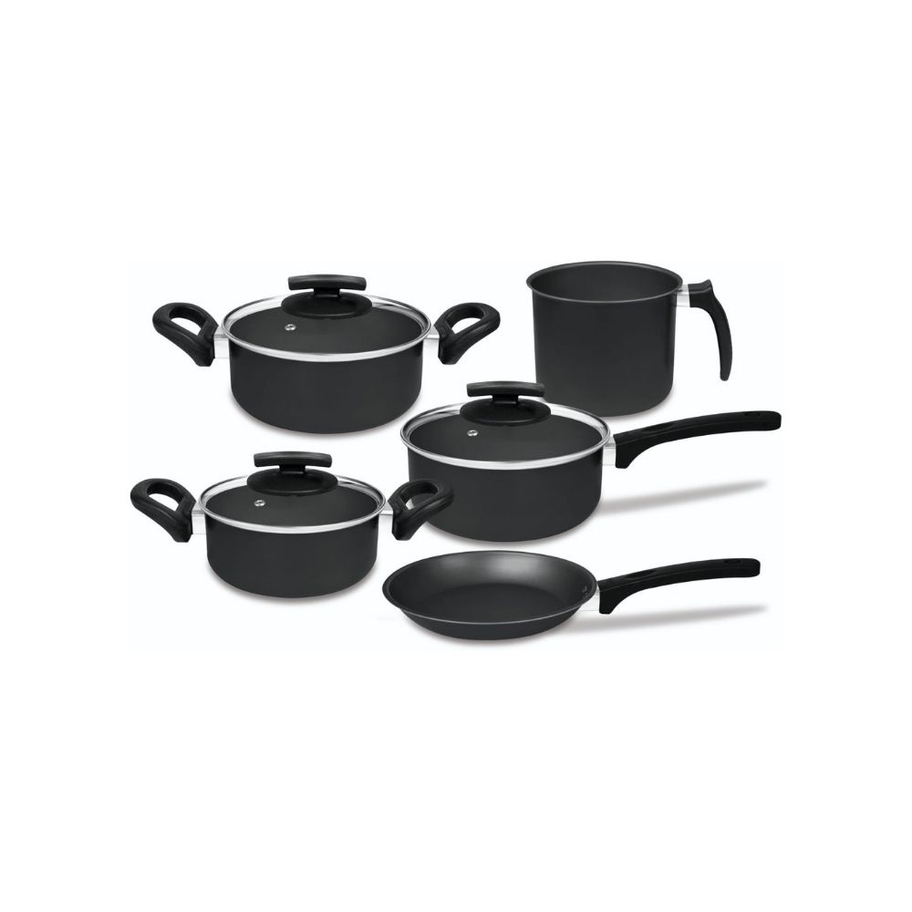 JOGO DE PANELAS REMAZA ANTIADERENTE COM TAMPA DE VIDRO 08 PEÇAS