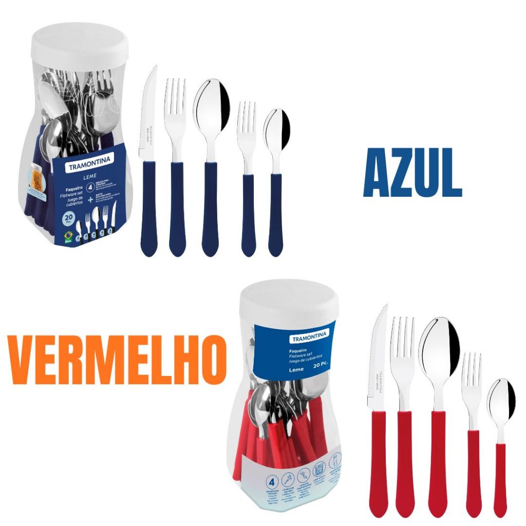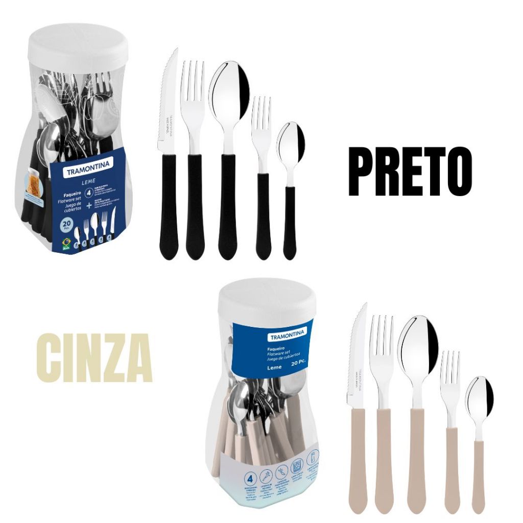 JOGO DE TALHERES FAQUEIRO TRAMONTINA 20 PEÇAS AÇO INOX-LEME