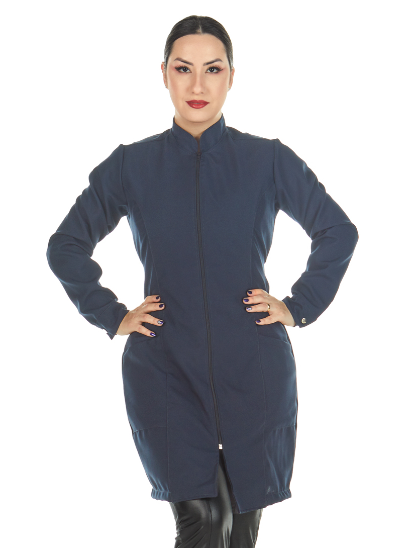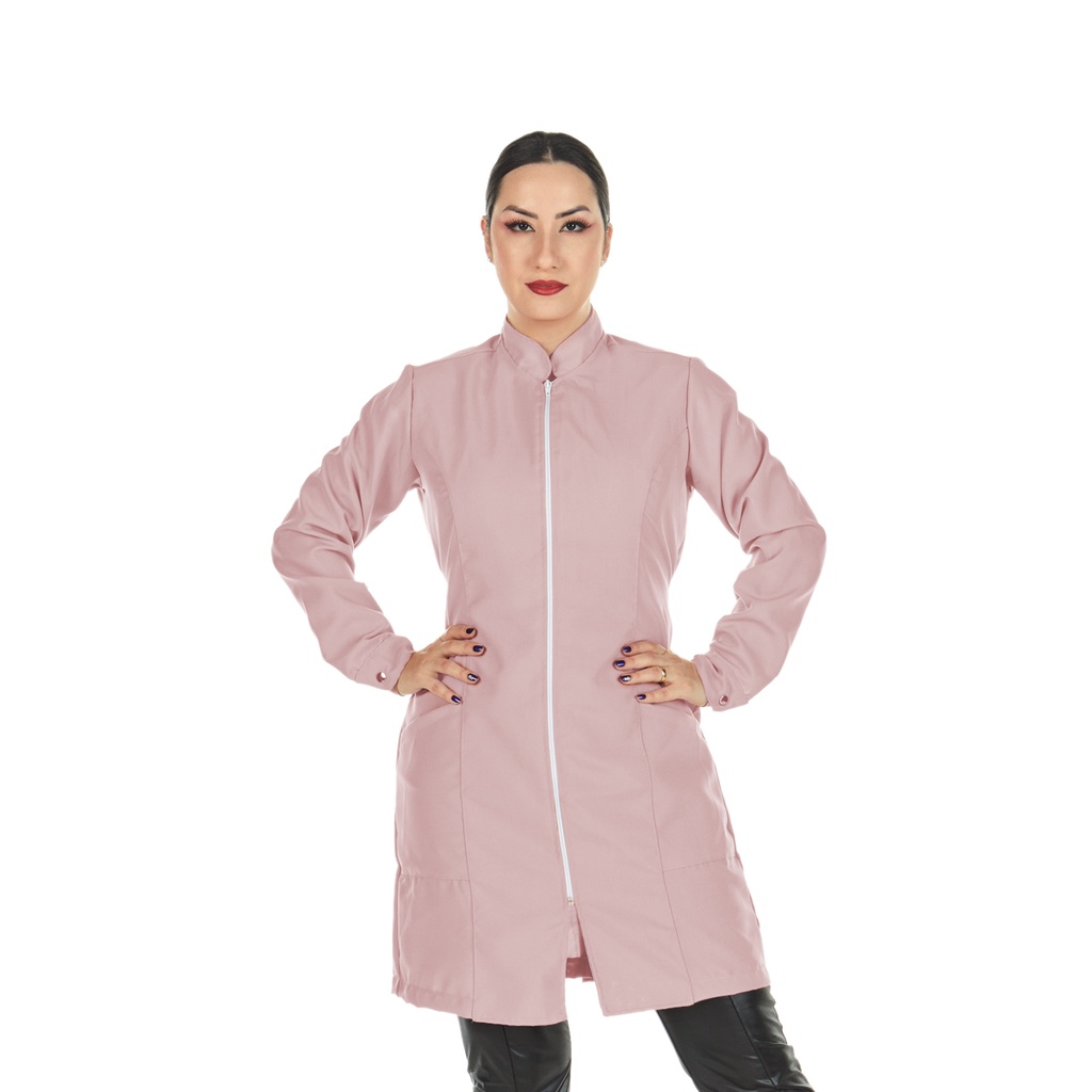 Jaleco Feminino Acinturado Oxford Manga Longa Com Zíper Gola Padre Várias Cores Estética Enfermagem