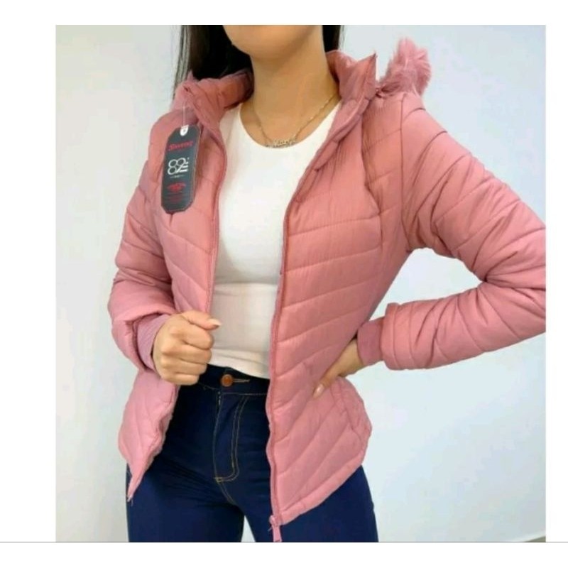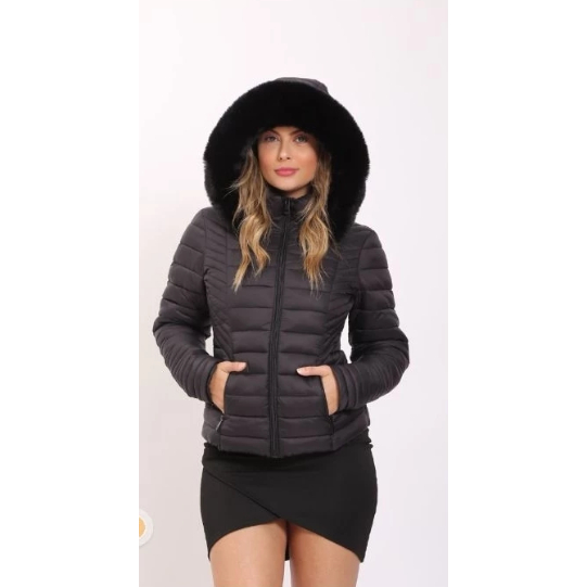 Jaqueta Bobojaco forrada com pelo feminina Gominho com Capuz JQ