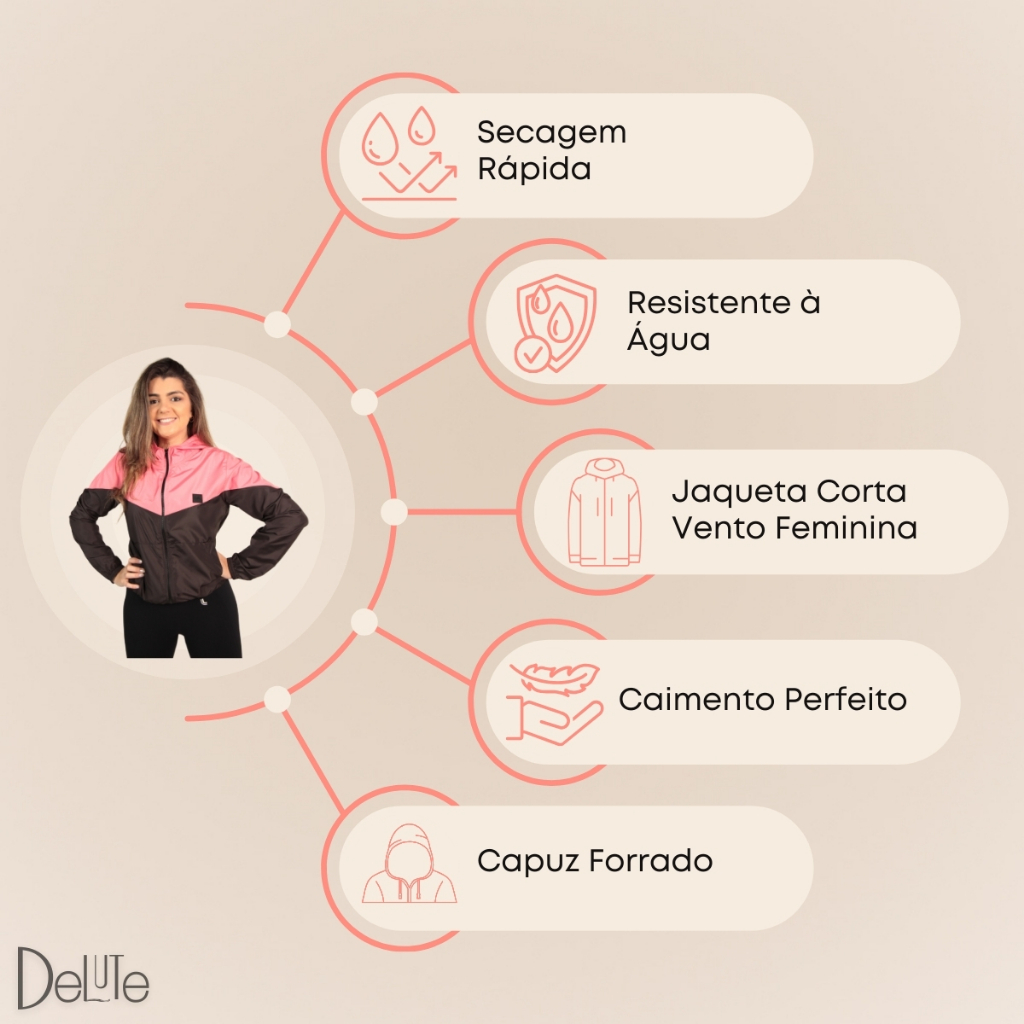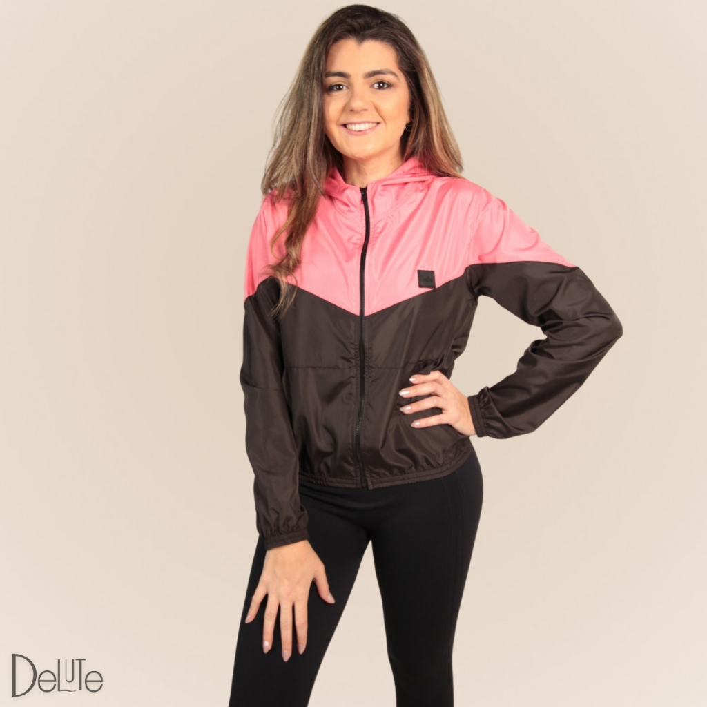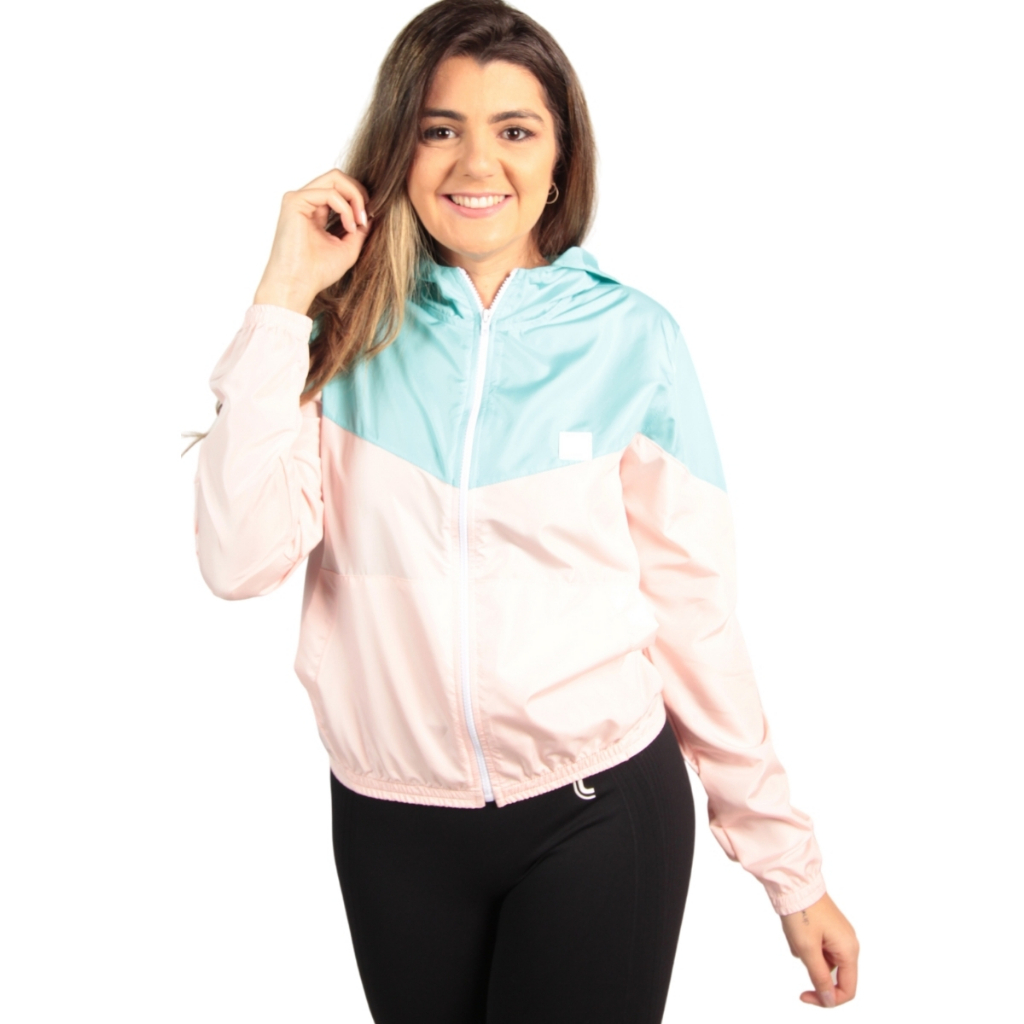 Jaqueta Corta Vento Feminina Dual Color Delute Resistente á Água Com Capuz Com Dois Bolsos Laterais