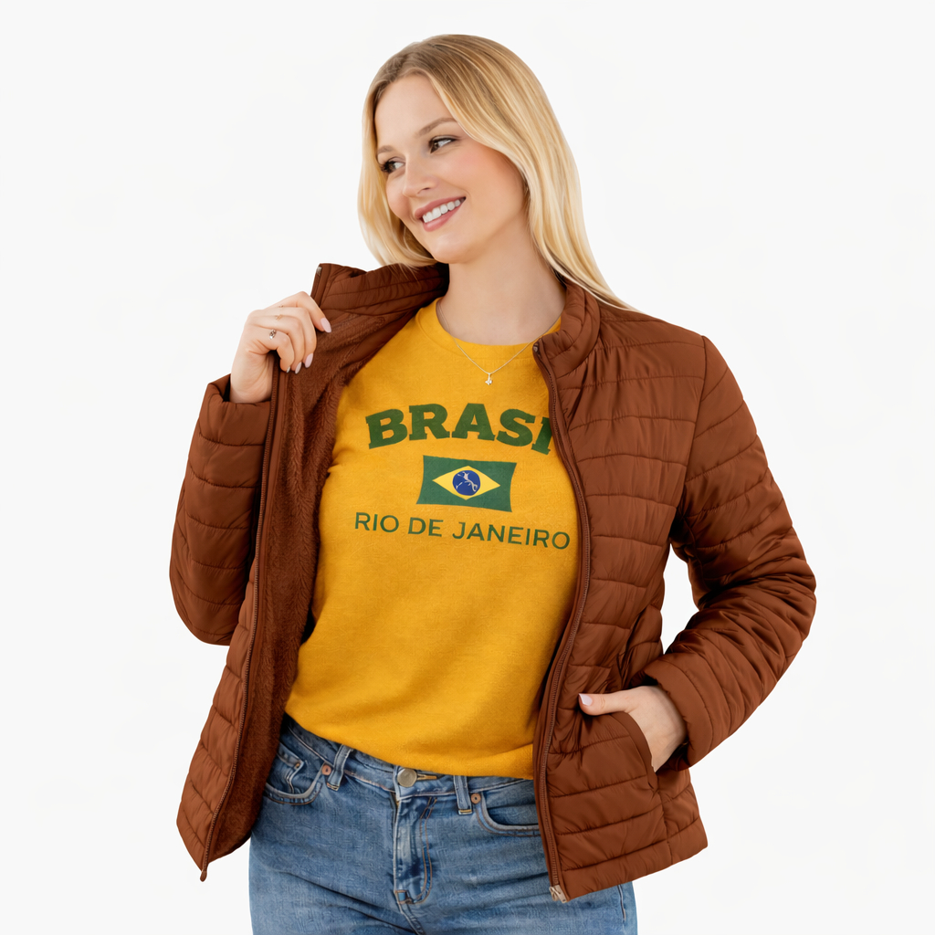 Jaqueta Feminina Puffer Bobojaco Sem Capuz Forrada Casaco Inverno Gominho