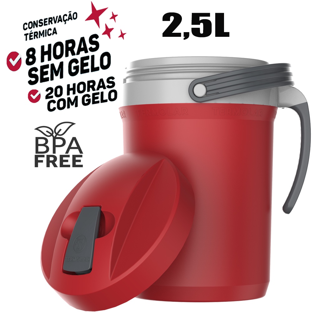 Jarra Térmica Fliptop Vermelho Bebida Gelada 2,5 Litros Tereré Suco