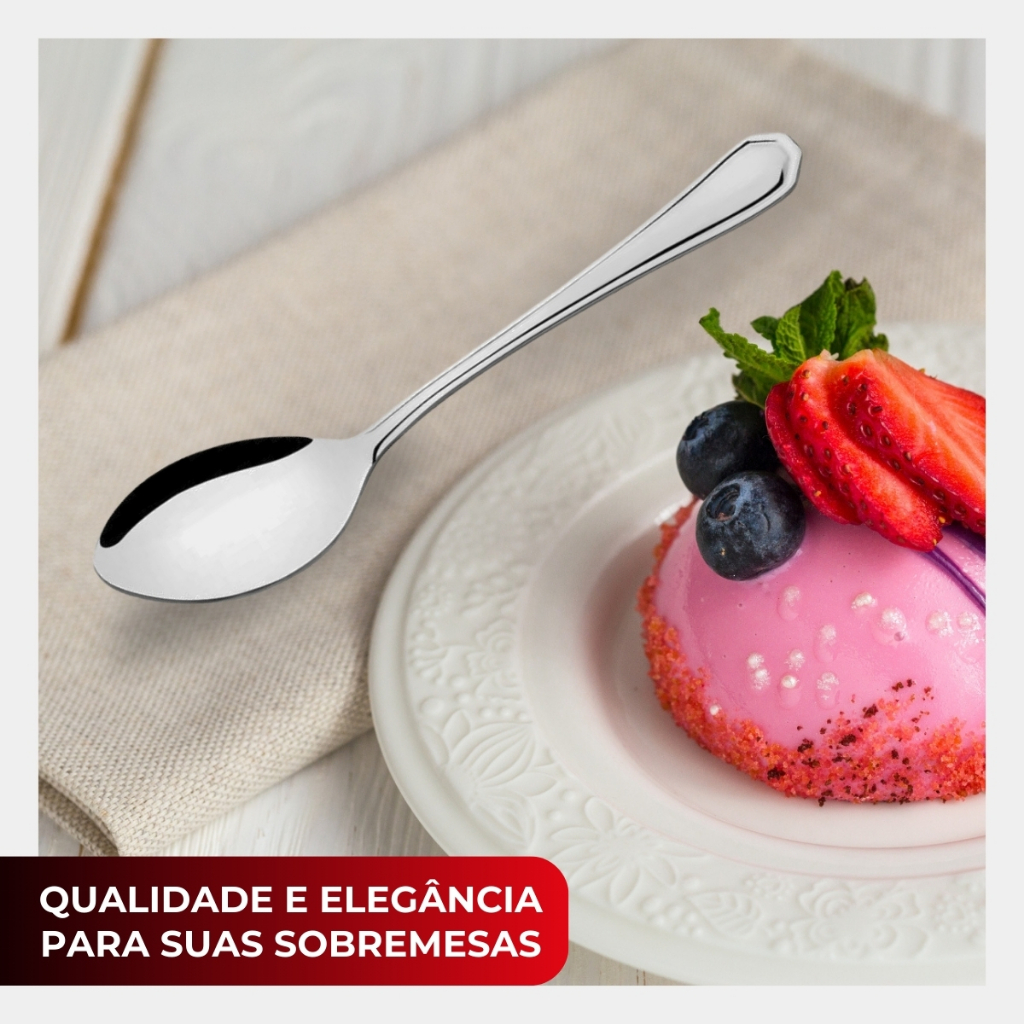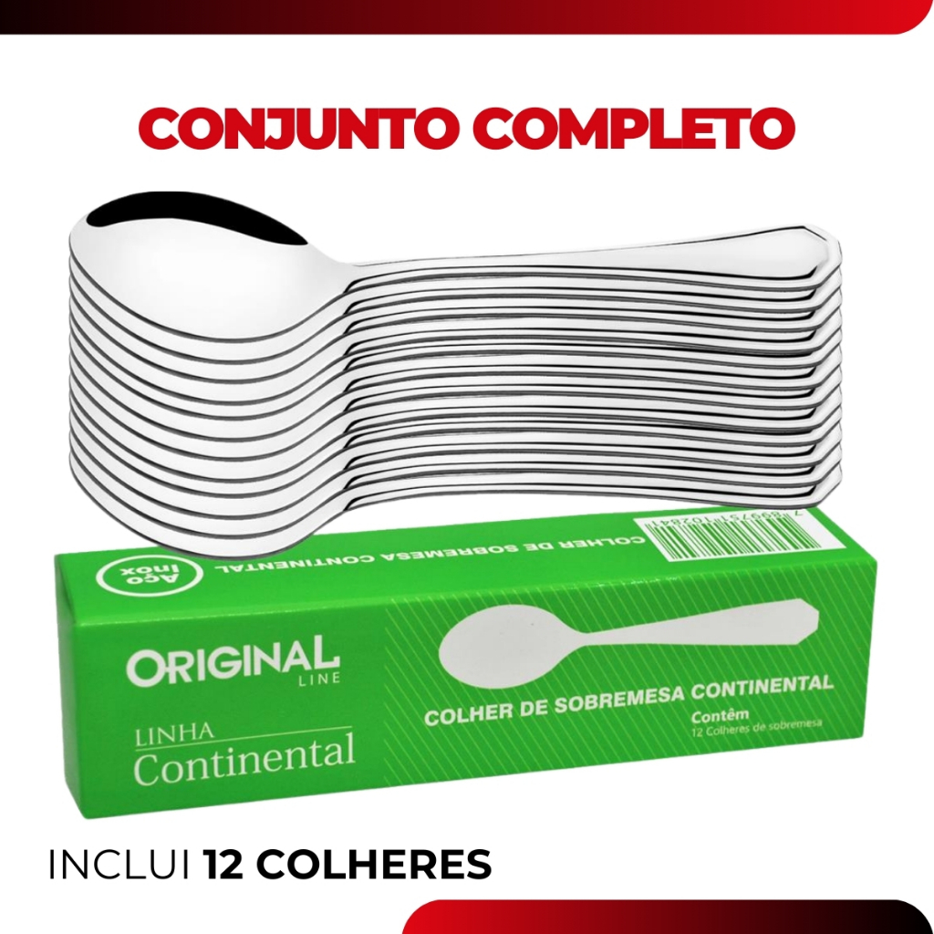 Jogo 12 Colher Sobremesa Restaurante Buffet Premium Conjunto Aço Inox Continental Original Line
