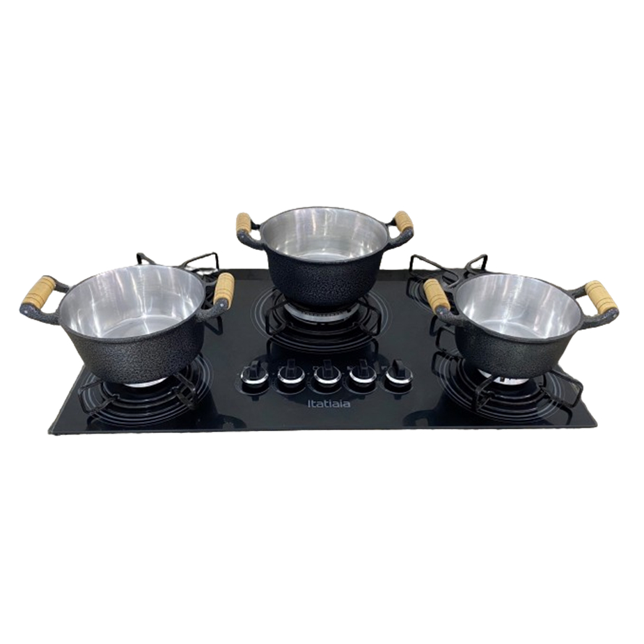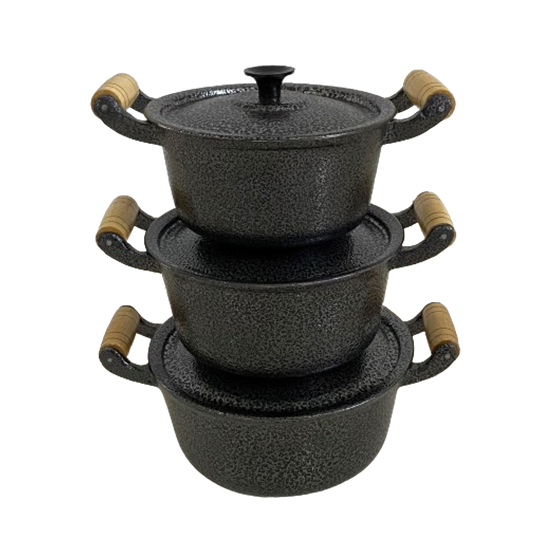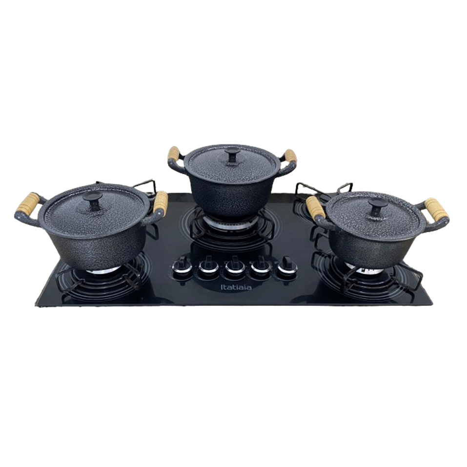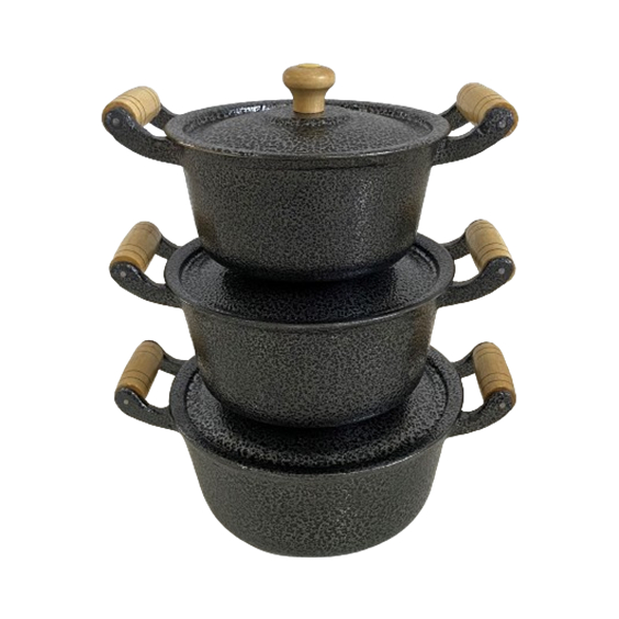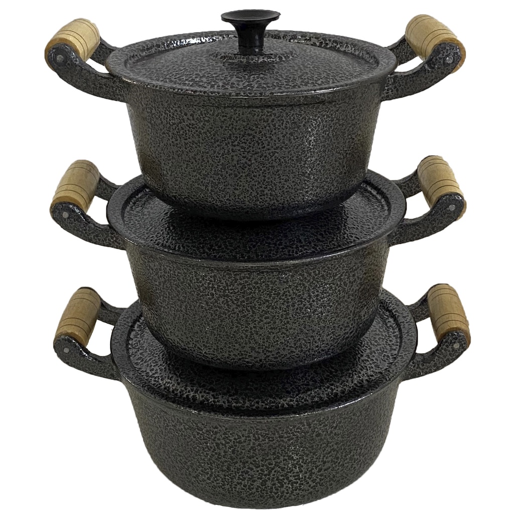 Jogo 3 Panelas Caçarolas Pretas Alumínio Grosso Batido Fundido Craqueado nº16 a 20