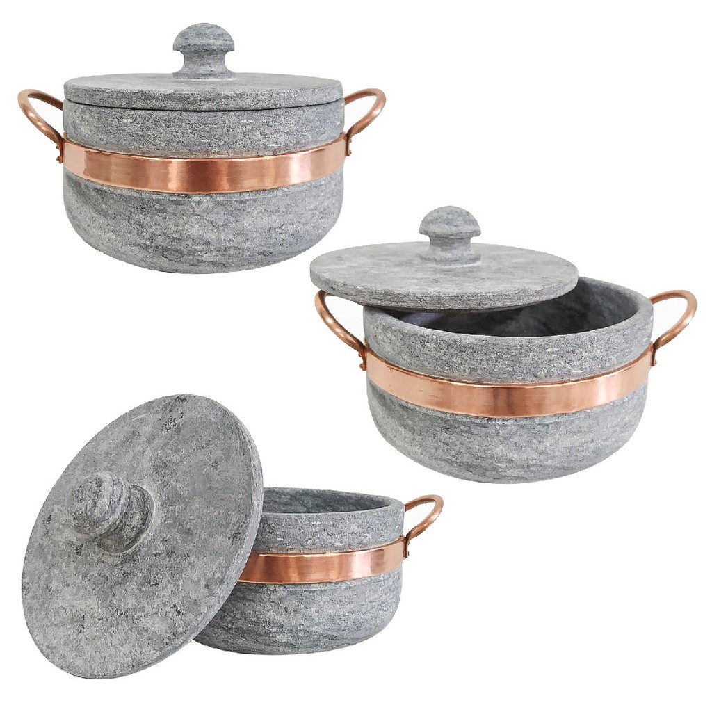 Jogo 3 Panelas De 3 Litros Grande Em Pedra Sabão Naturais