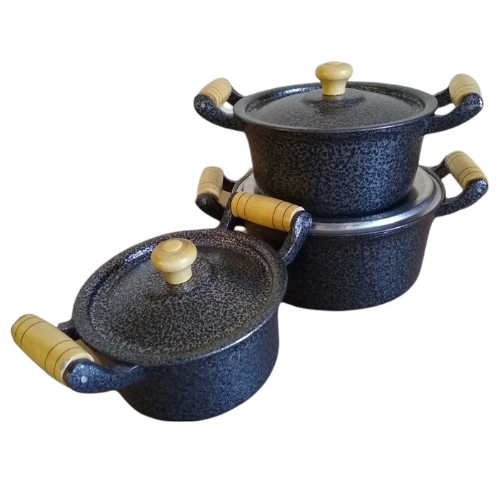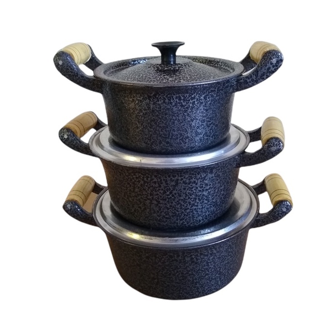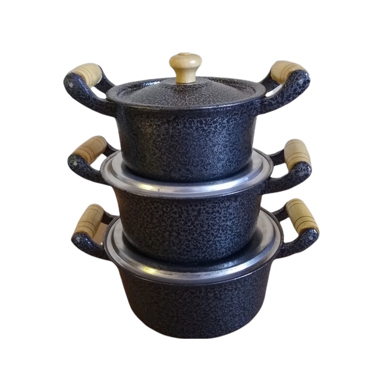 Jogo 3 Panelas Pretas Pequenas Alumínio Batido Fundido Grosso 2 Caçarolas 16 + 1 Caçarola 14