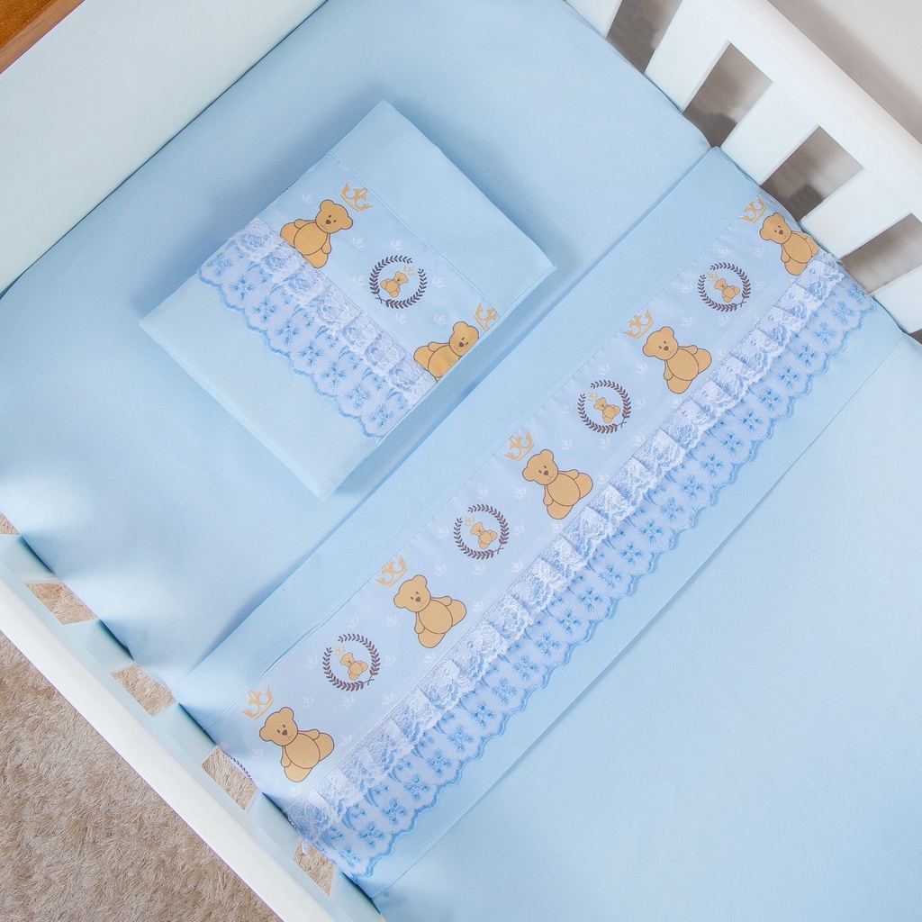 Jogo 3 Peças Lençol 130x70cm Berço Americano Padrão Percal 400 fios Antialérgico