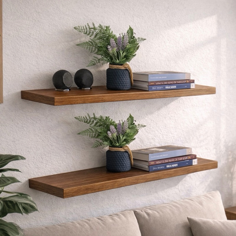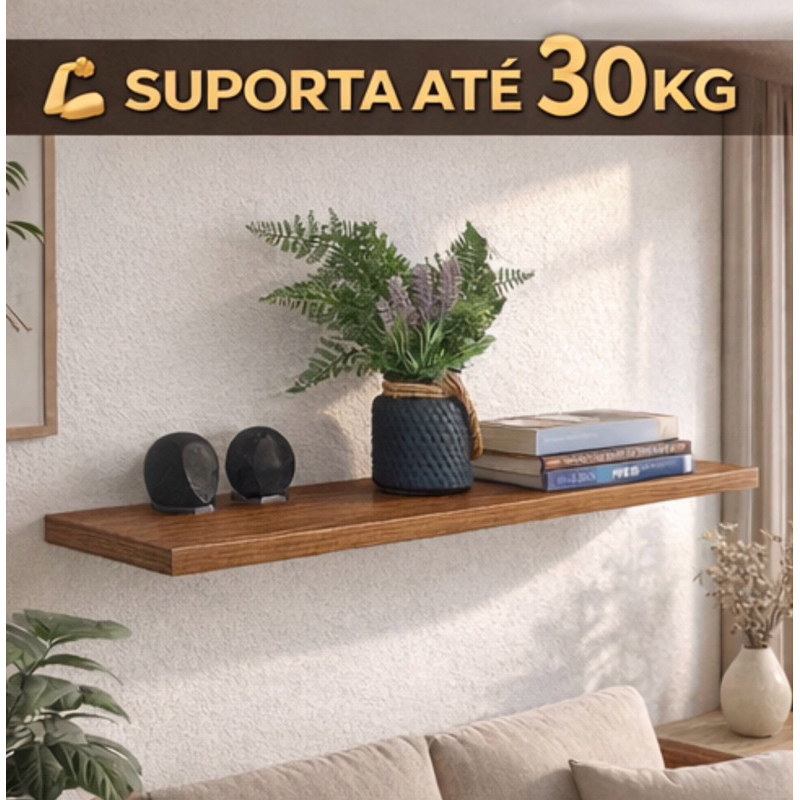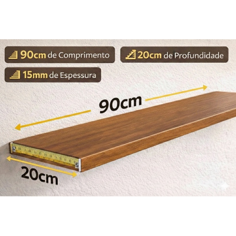 Jogo 3 Prateleiras MDF 90x20cm MADEIRADO/FREIJÓ 15mm + Suporte Invisível (1, 2 ou 3 unidades)