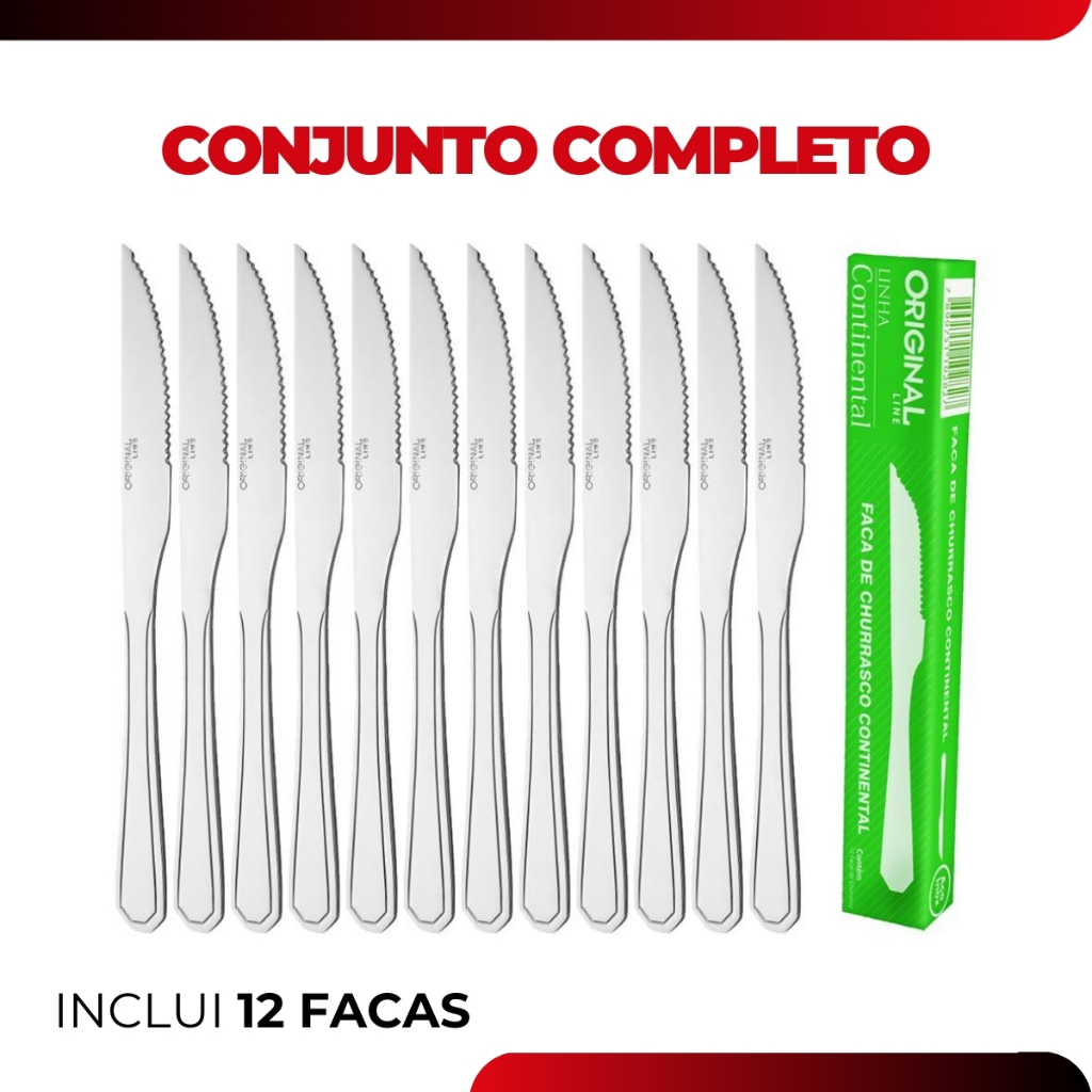 Jogo 48 Faca Churrasco Mesa Restaurante Buffet Premium Conjunto Aço Inox Continental Original Line