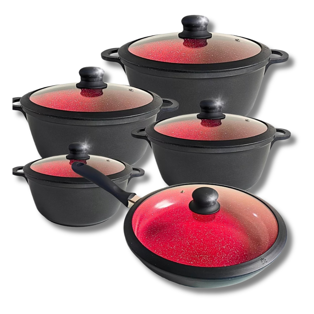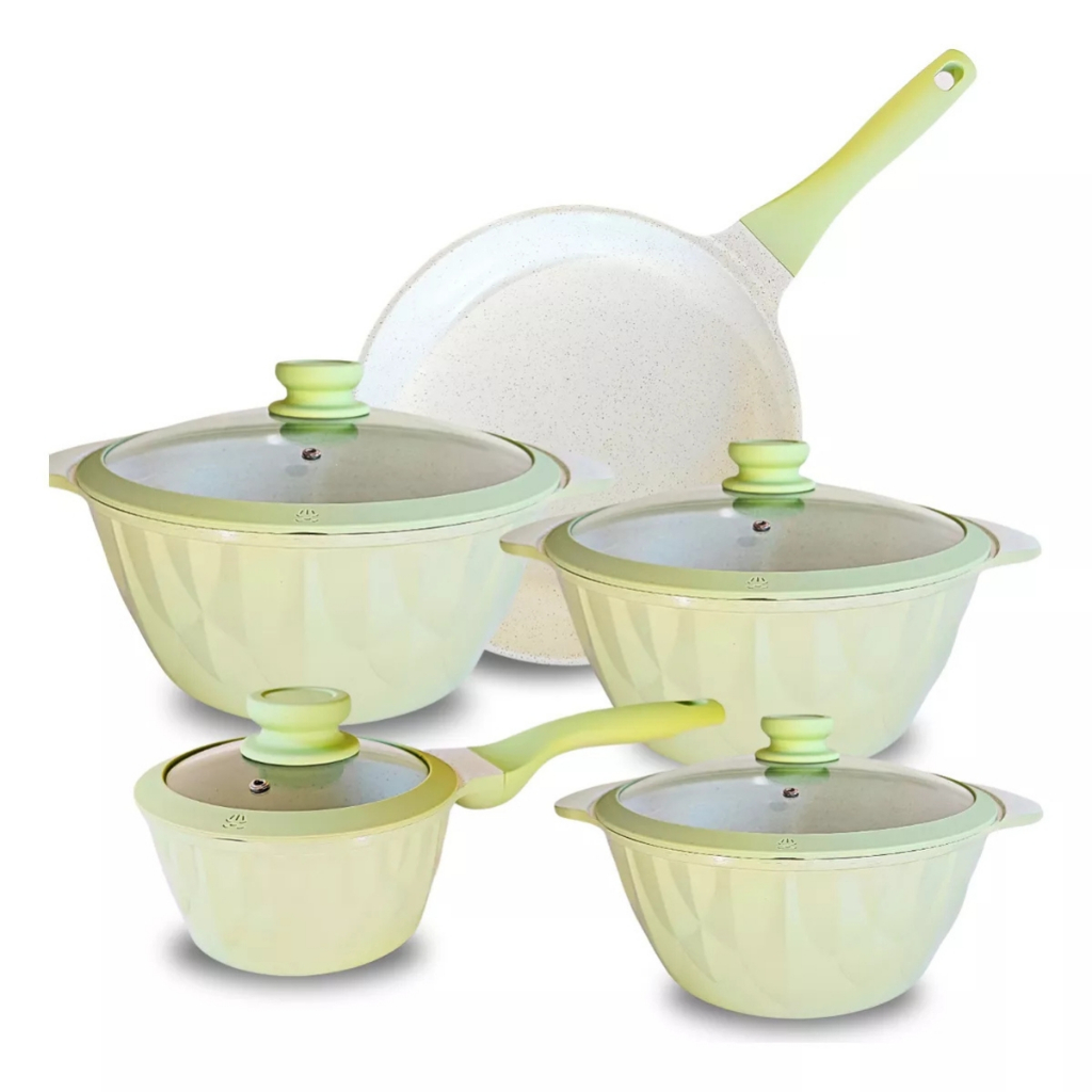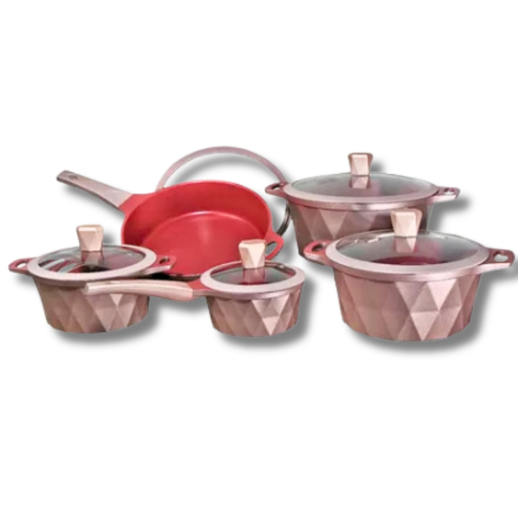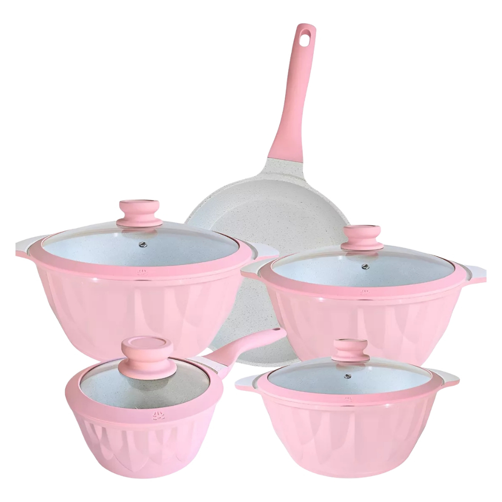 Jogo 5 Panela Indução Diamante Cerâmica Marmoriza Rose Bege