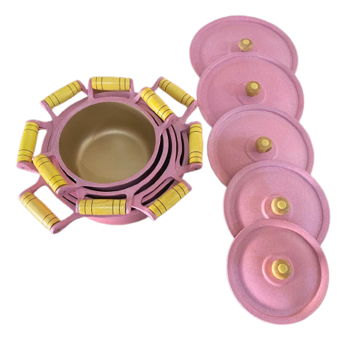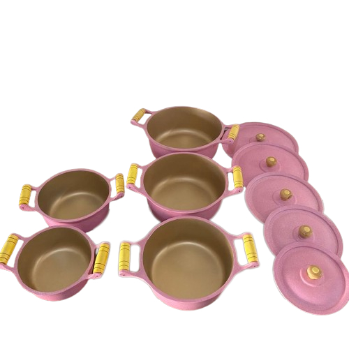 Jogo 5 Panela Teflon Antiaderente Aluminio Fundido Grosso ROSA