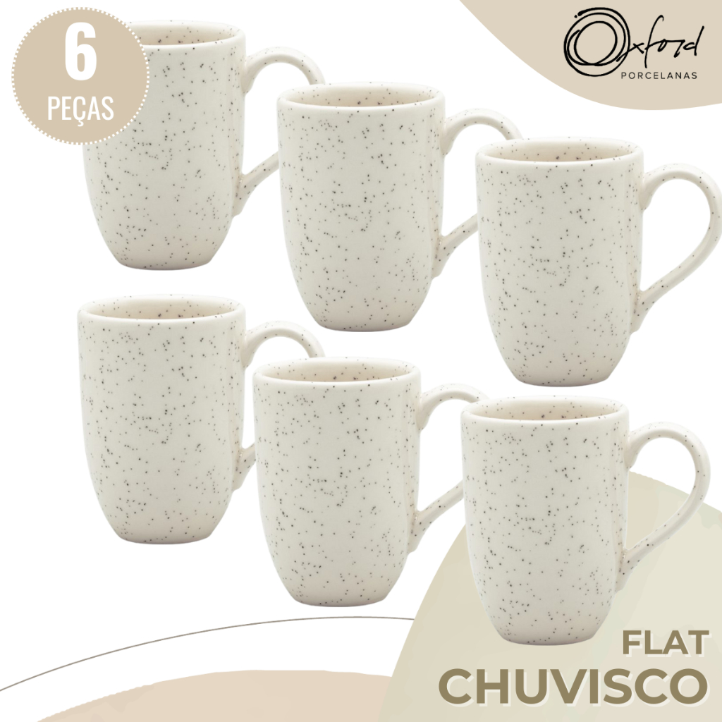 Jogo 6 Canecas Café Chá 350ml Areia Flat Chuvisco Oxford