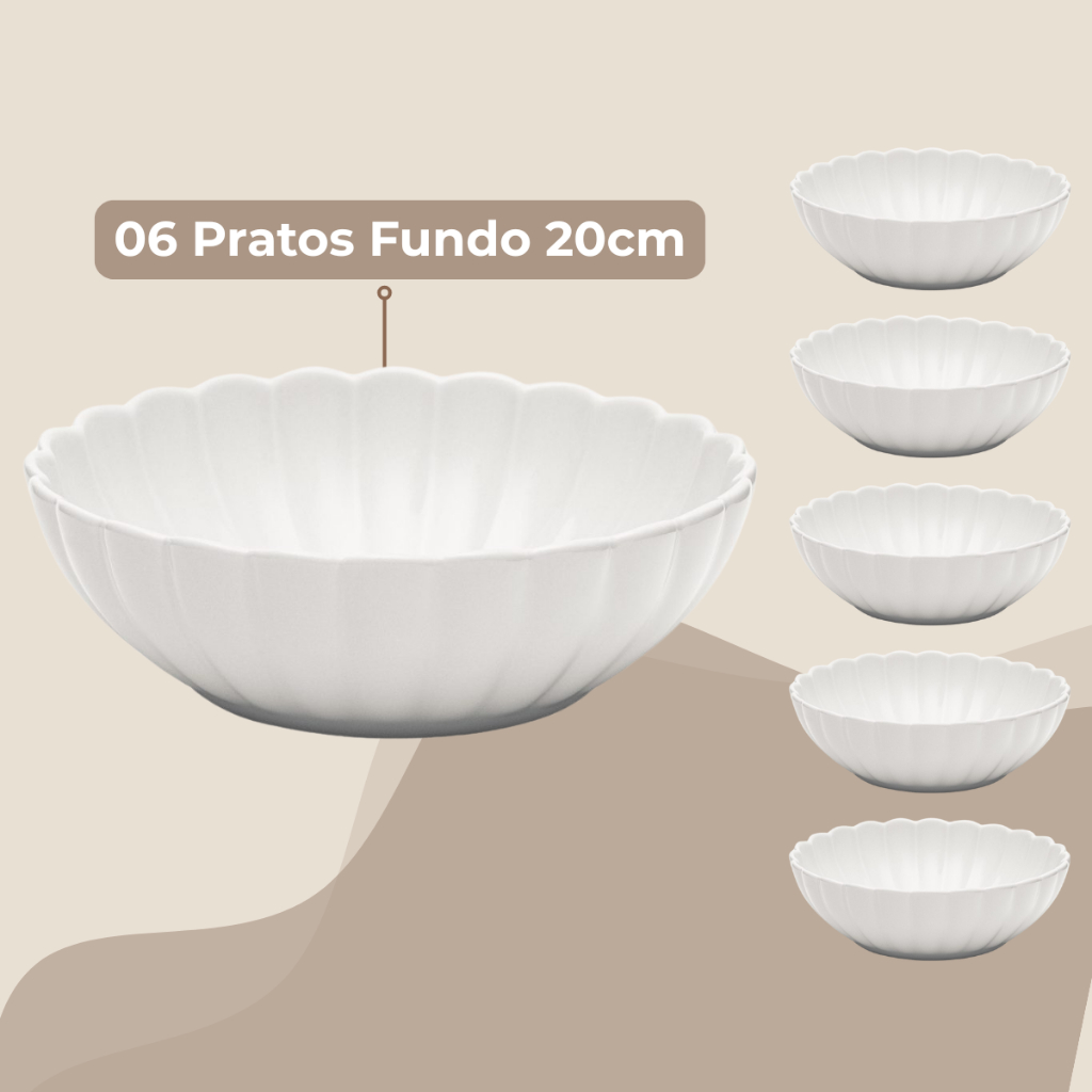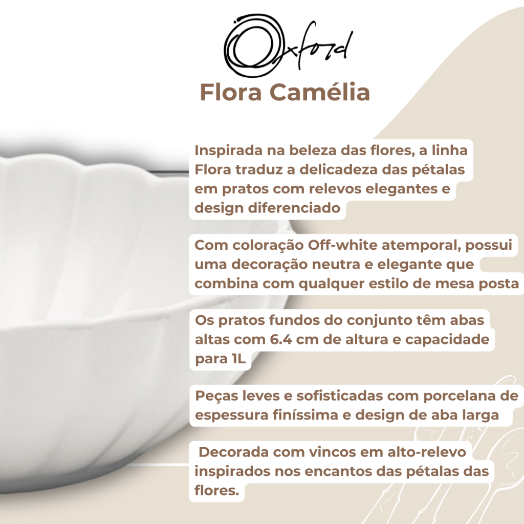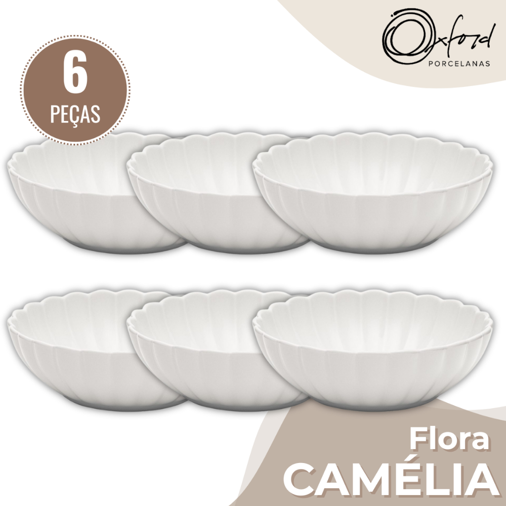 Jogo 6 Pratos Fundos Flora Camelia 20cm Porcelana Oxford Bowl Tigela