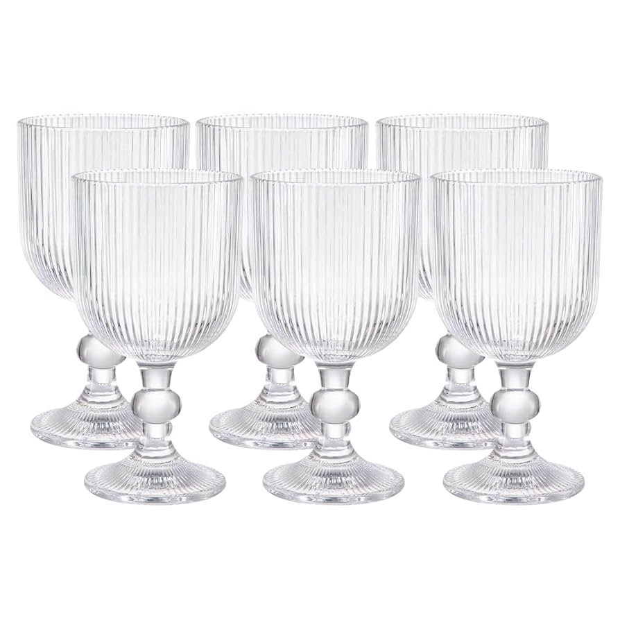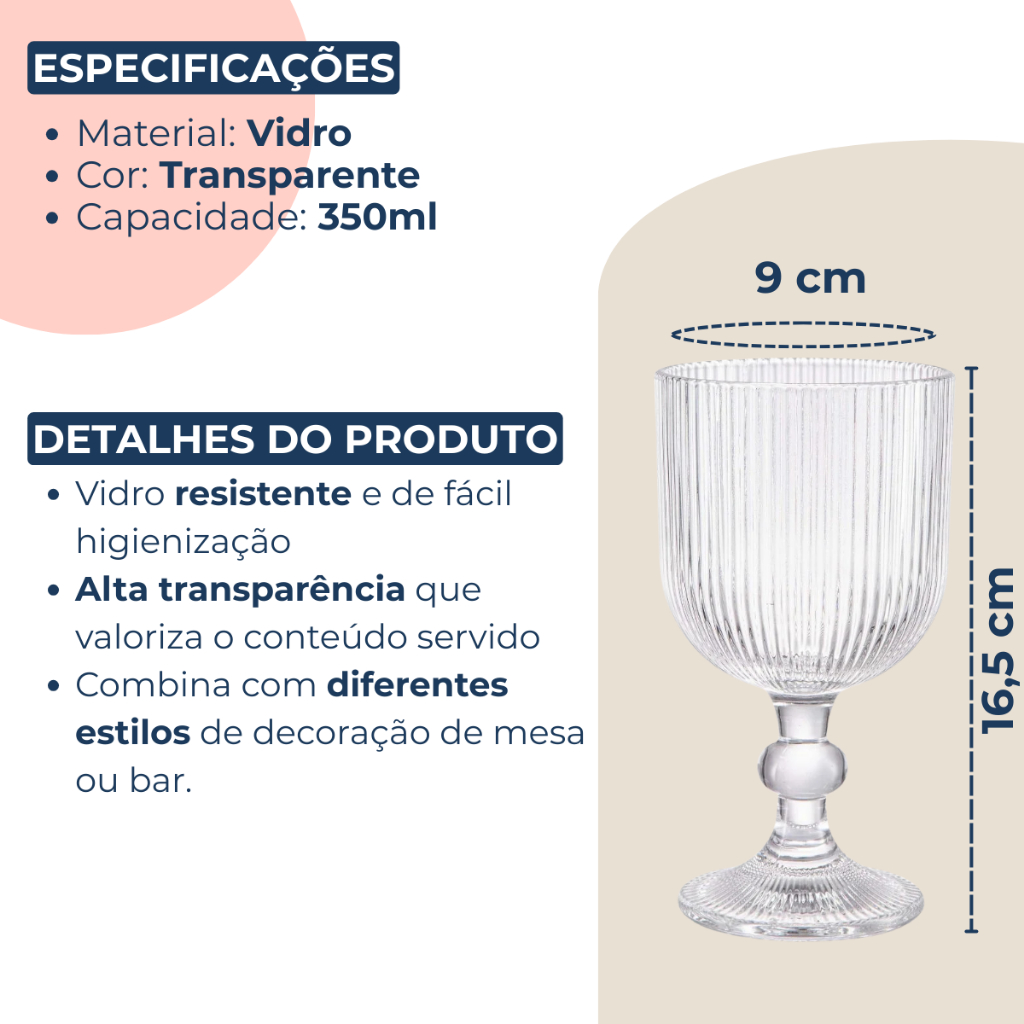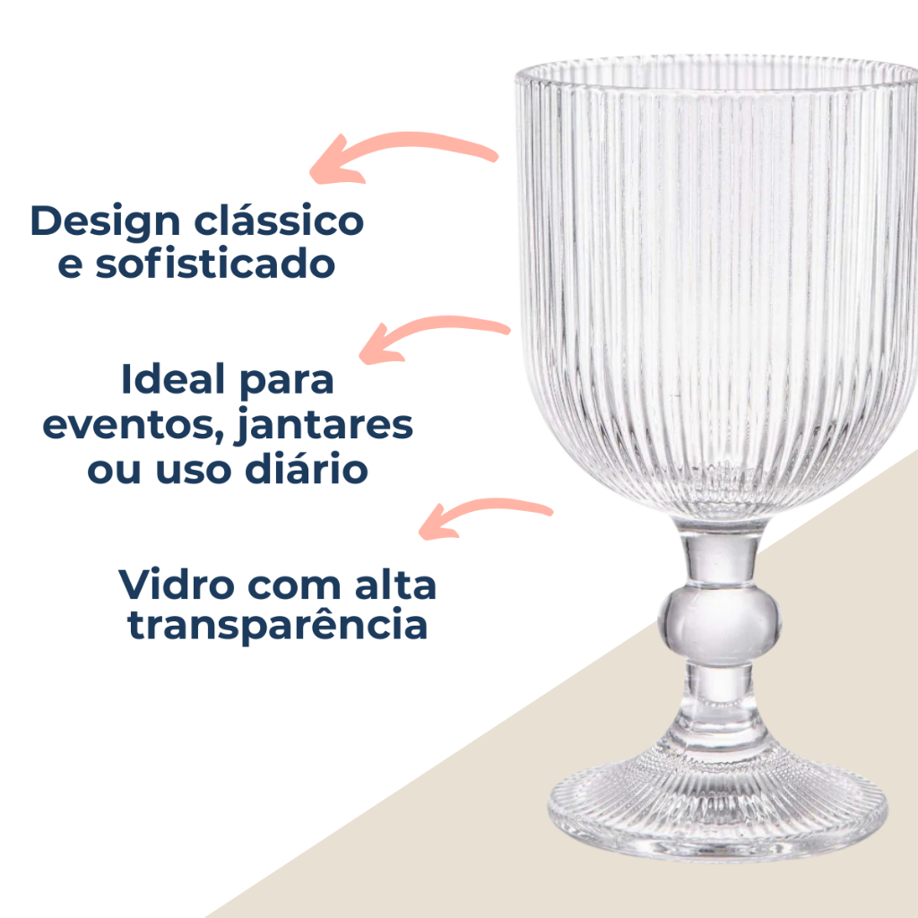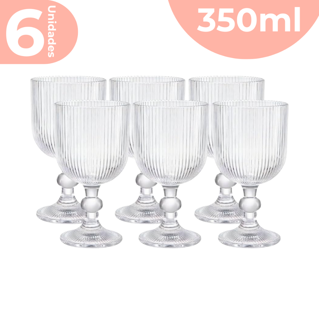 Jogo 6 Taças Vidro Canelado 350ml Água Suco Grande Resistente