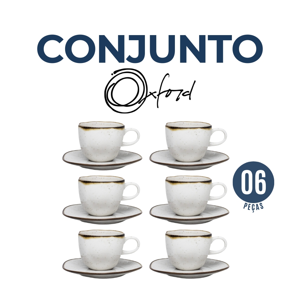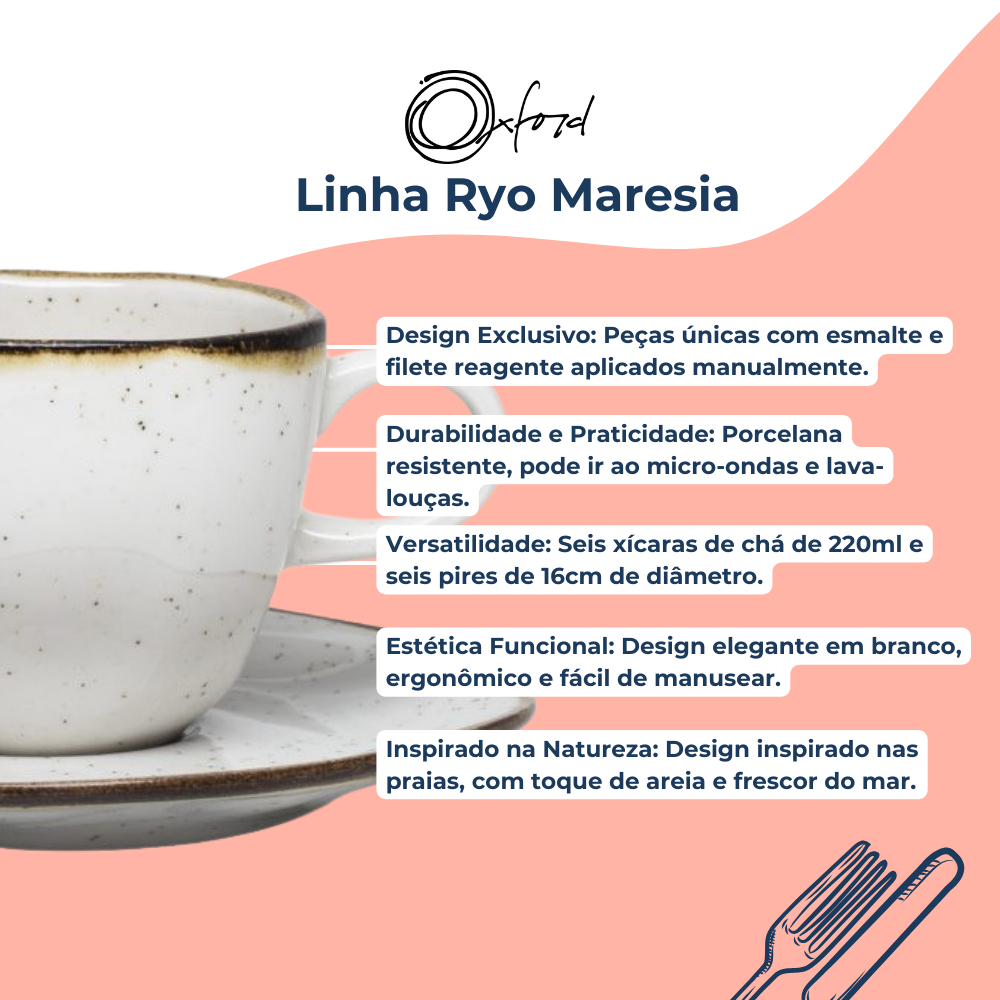 Jogo 6 Xícaras Chá Café Com Pires Ryo Maresia Areia 220ml Oxford Porcelanas