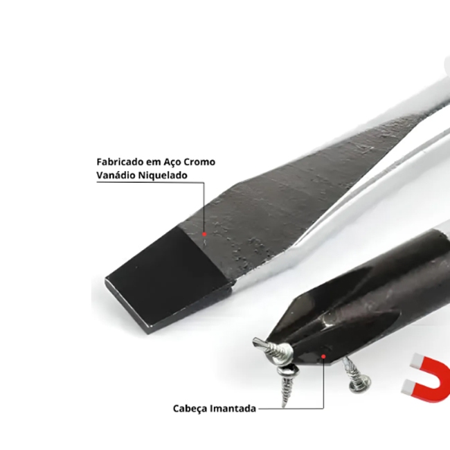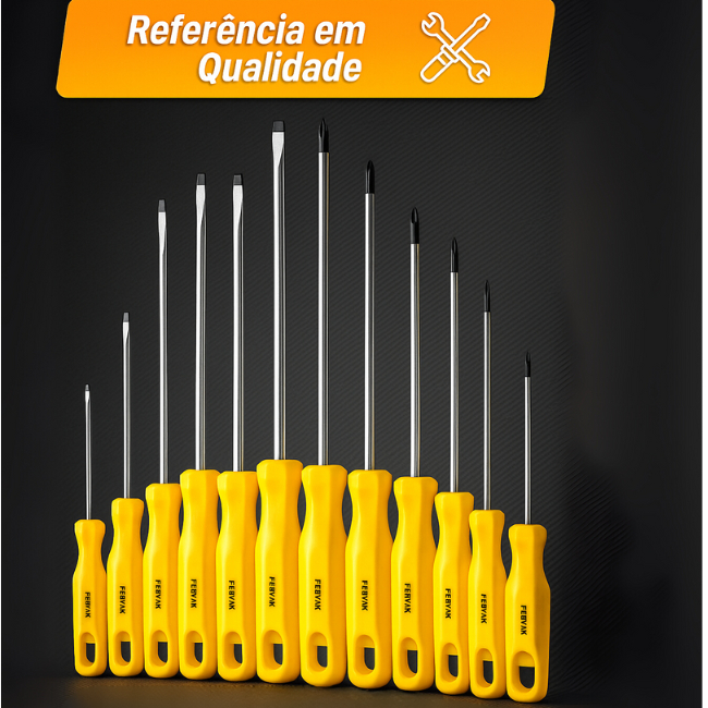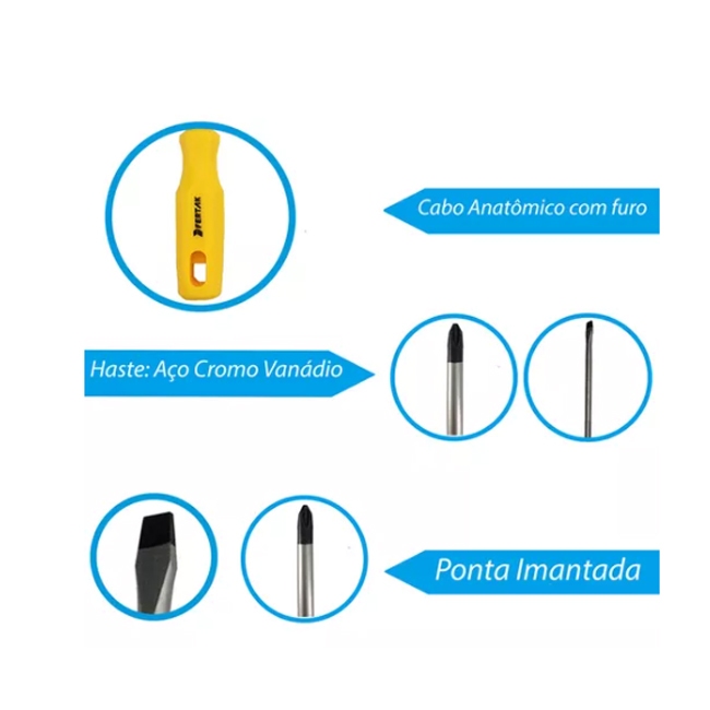 Jogo Com 10 Chave de Fenda e Phillips Profissional Kit Imantada Magnética Imã Fertak - Lotus
