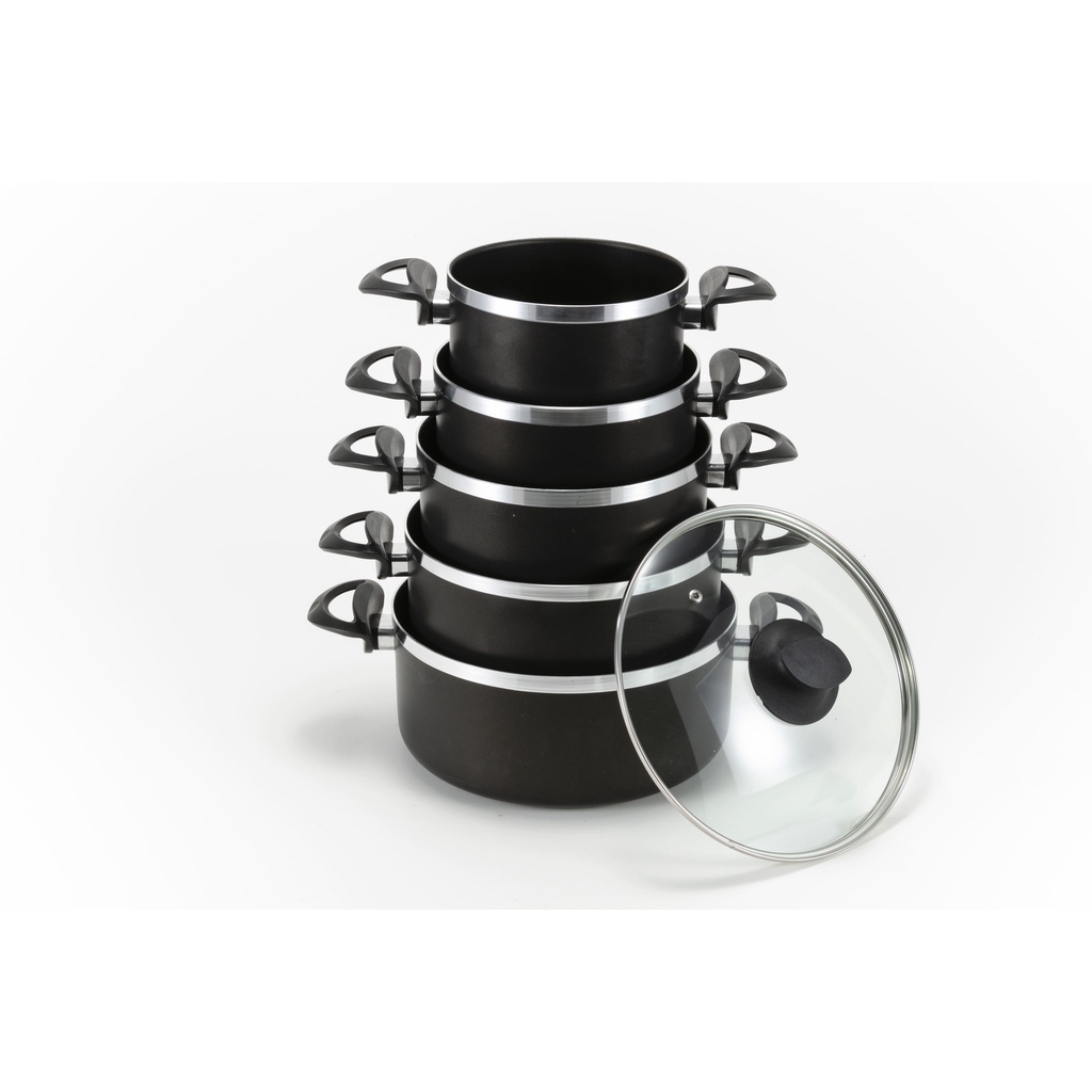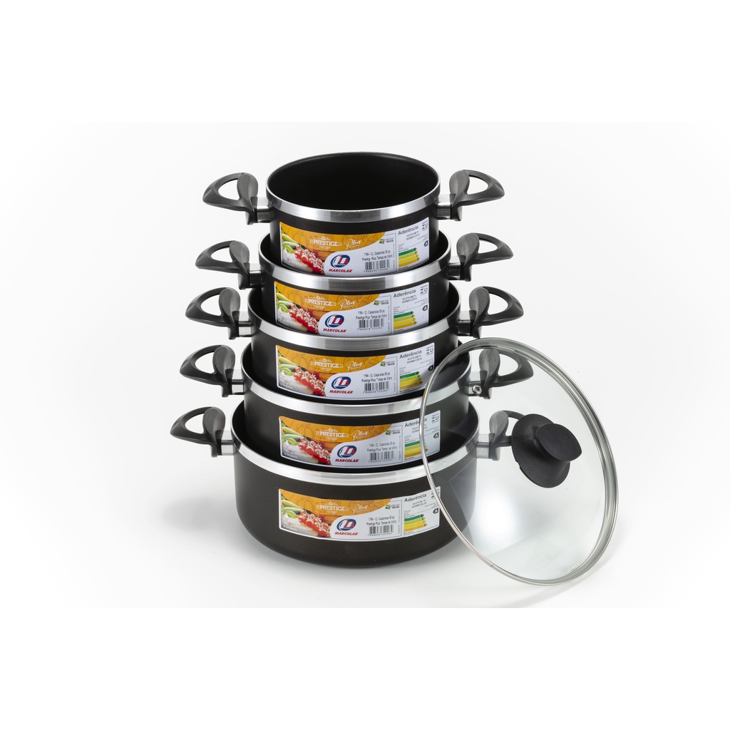 Jogo Conjunto de Caçarolas 5 Peças 16 18 20 22 24 Alumínio Grosso Antiaderente + Tampa de Vidro