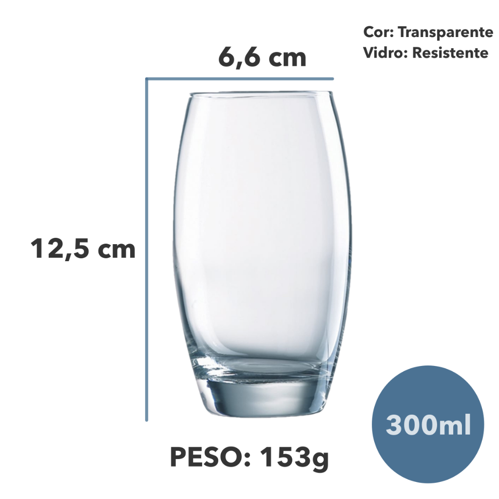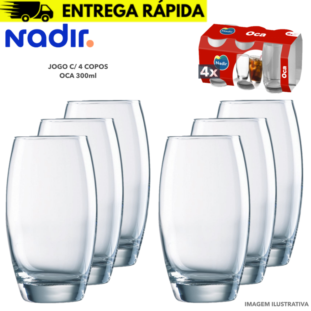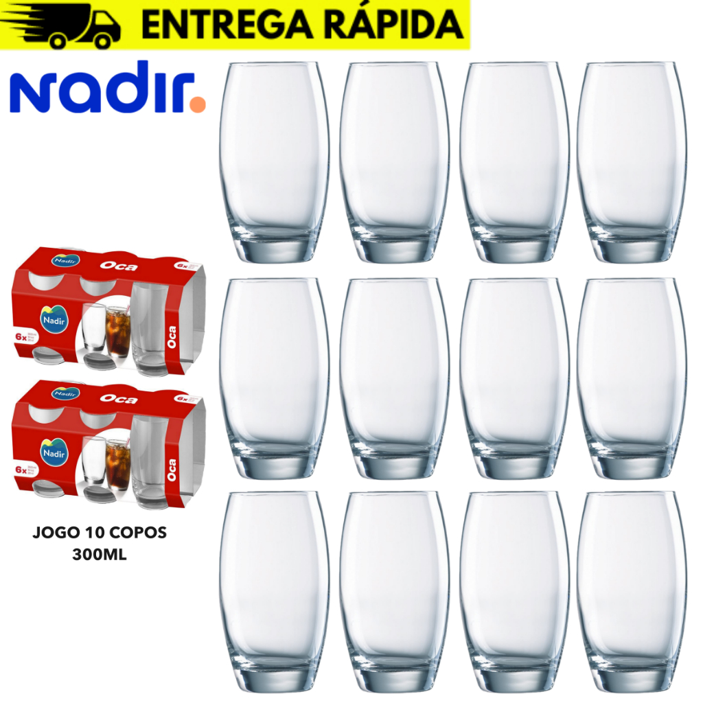 Jogo 10/6/4 Copos Multiuso Vidro Resistente Oca Vitamina 300ml - Nadir