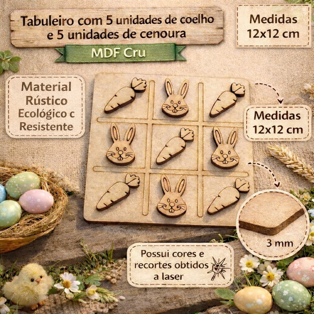 Jogo Da Velha Lembrancinha De Páscoa Em Mdf Cru Tabuleiro Brinquedo Presente