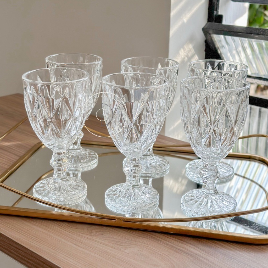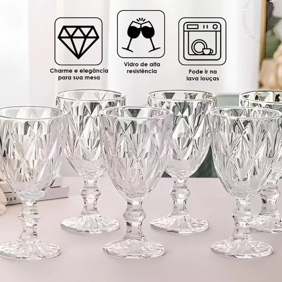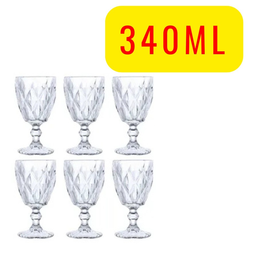 Jogo De 6 Taças 340ml Ou 260ml Linha Diamond Vidro Transparente Elegante E Muito Resistente