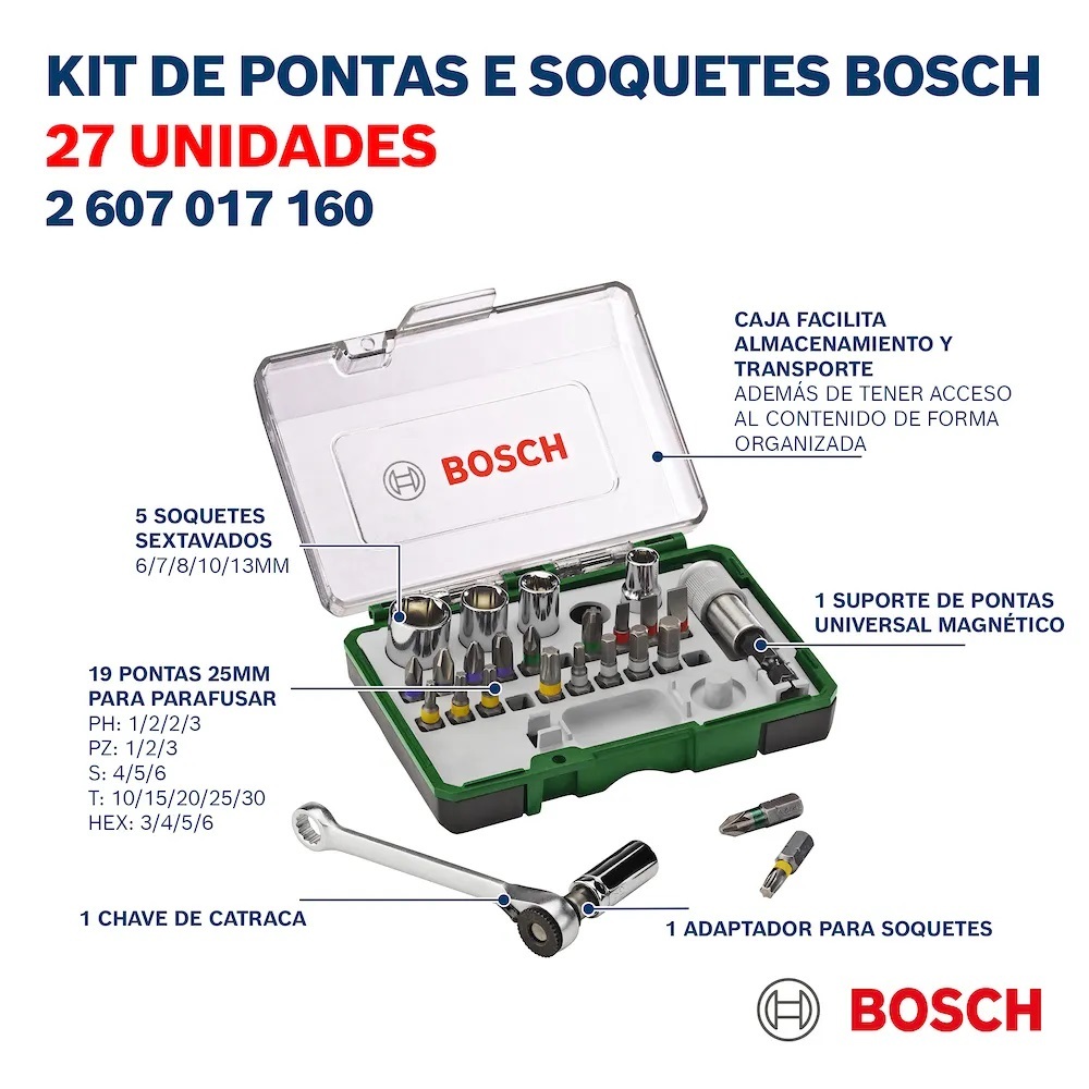 Jogo De Bits E Soquetes 27 Peças Com Alongador E Catraca Bosch